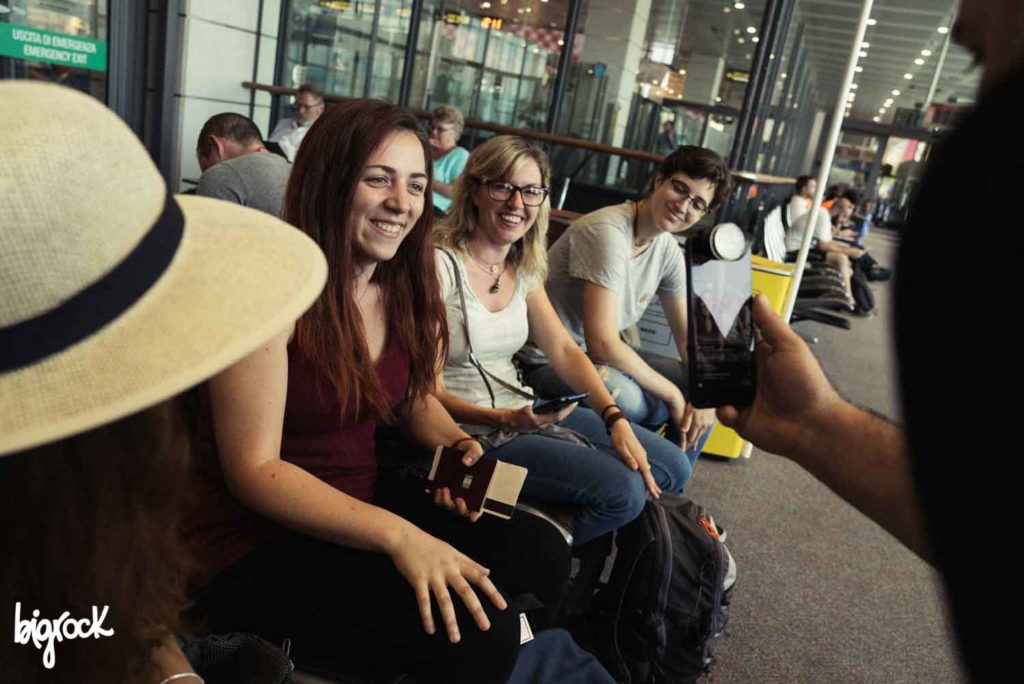 e qui, qualcosa ci insospettisce: praticamente usciamo dal’aeroporto, arriviamo davanti al checkin dove 5 addetti impazziti cominciano ad urarlare orari a caso, “chi è 7? chi 6.21 ?”.