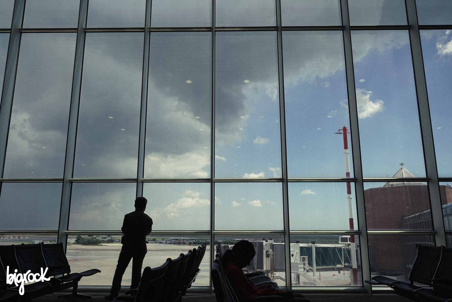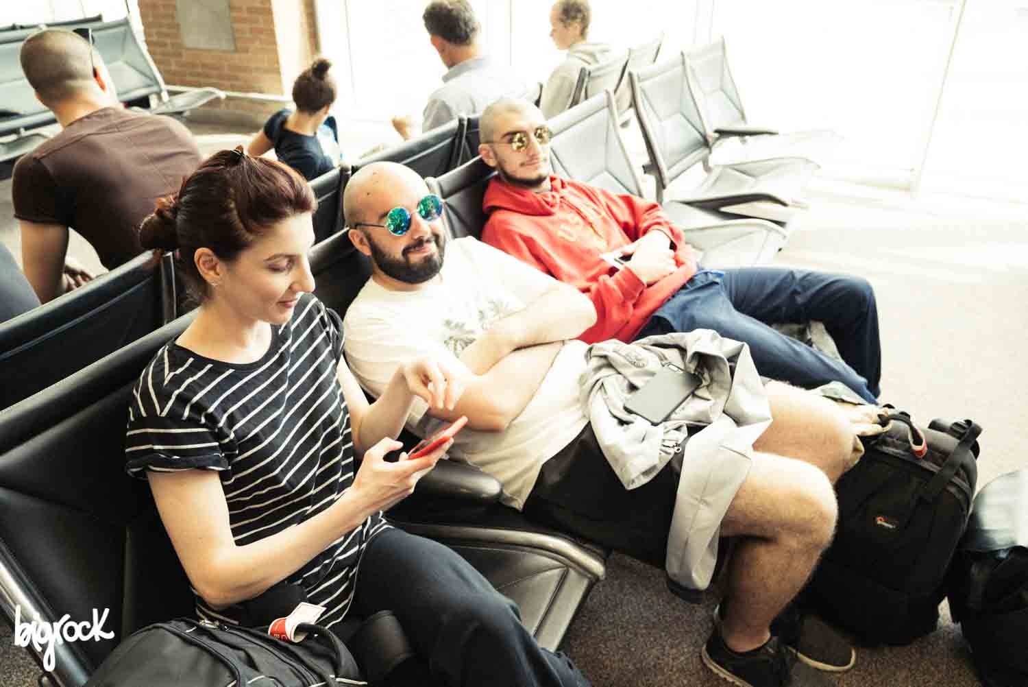 Davanti a loro un mare di valige, la gente passa, lascia la valigia come se nulla fosse e va al Gate del proprio aereo.