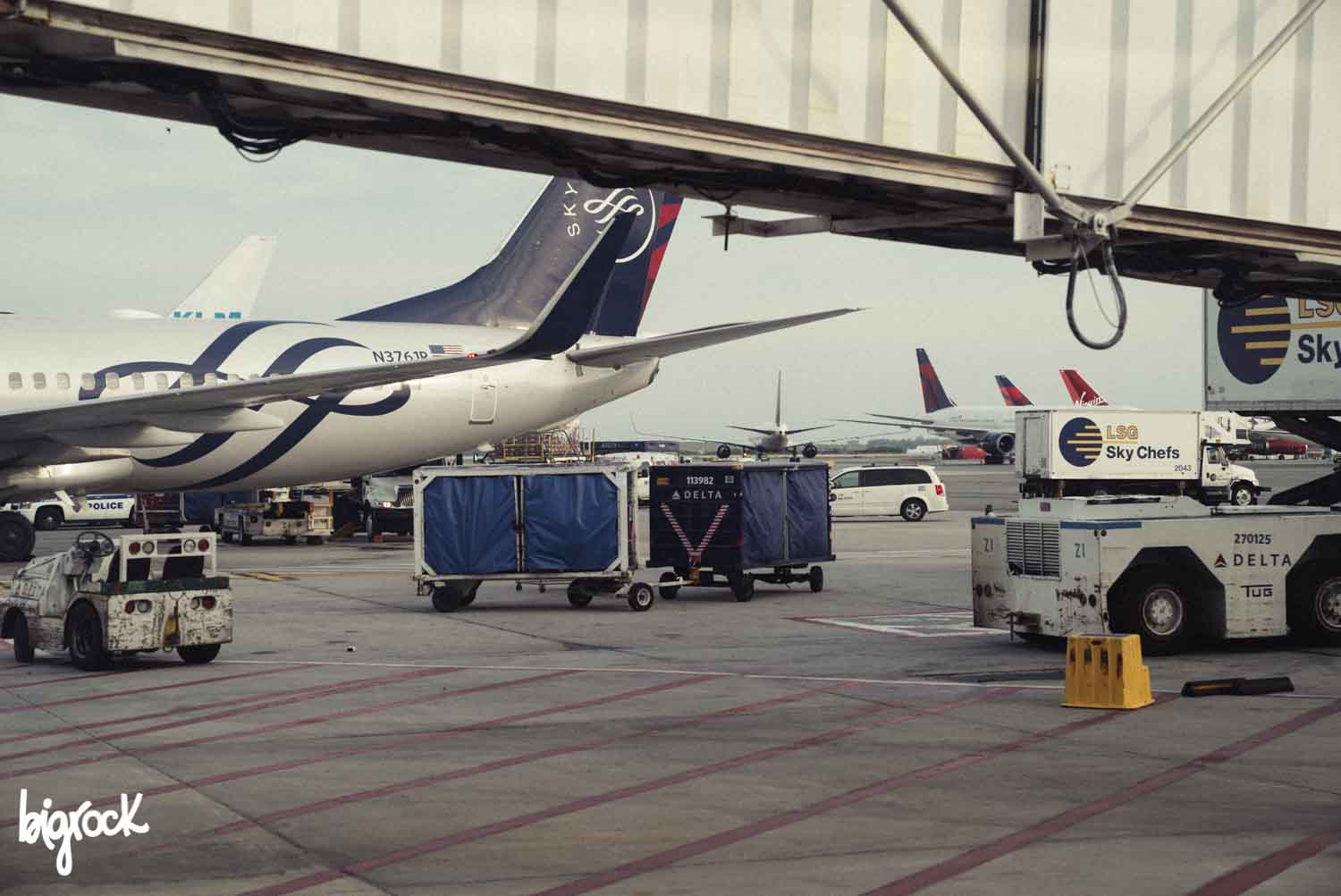 A NewYork ci fermiamo almeno 2 ore a gironzolare sulla pista, in decollo siamo il numero 15, quindi quello che doveva essere un volo di cinque ore diventa di più di 7. Però almeno a bordo abbiamo il wifi, che non funziona. La temperatura del condizionatore è fissata a -10, ma il panorama fuori dal finestrino è meraviglioso (buio totale).
