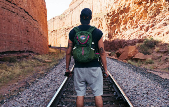 Ci siamo arrampicati passando attraverso i binari di una ferrovia dentro una gola scavata nella roccia, fino ad arrivare ad un arco mozzafiato.