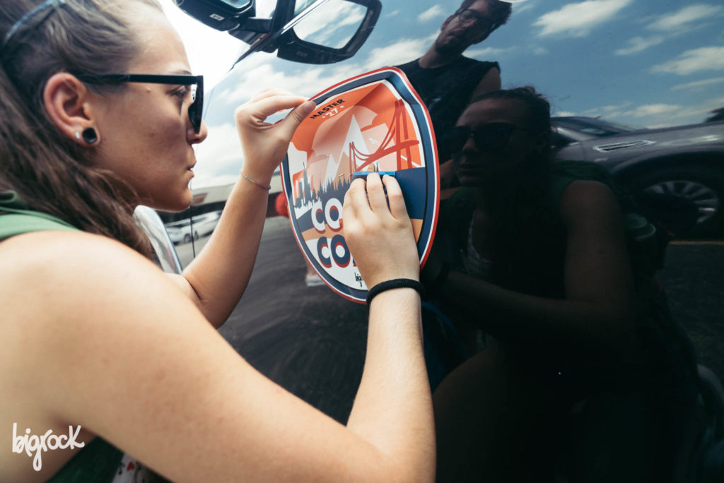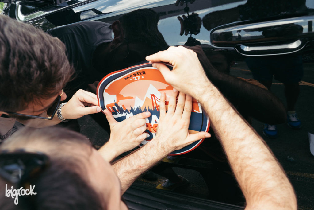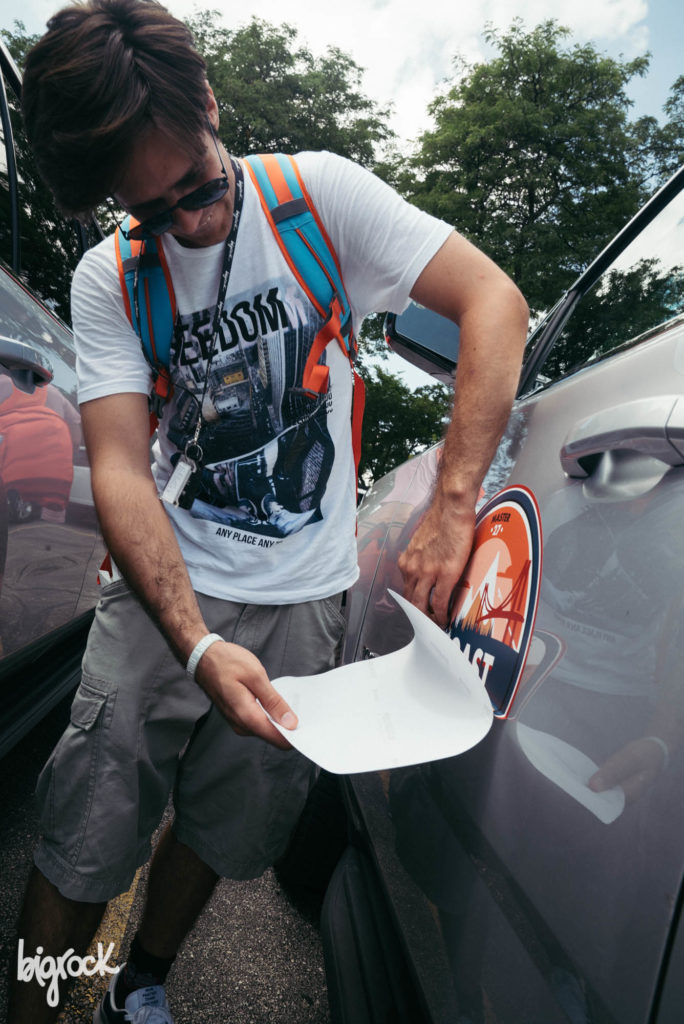 A Lisle attacchiamo gli adesivi sulle macchine, diamo i nomi ad ogni equipaggio e consegniamo le radio.