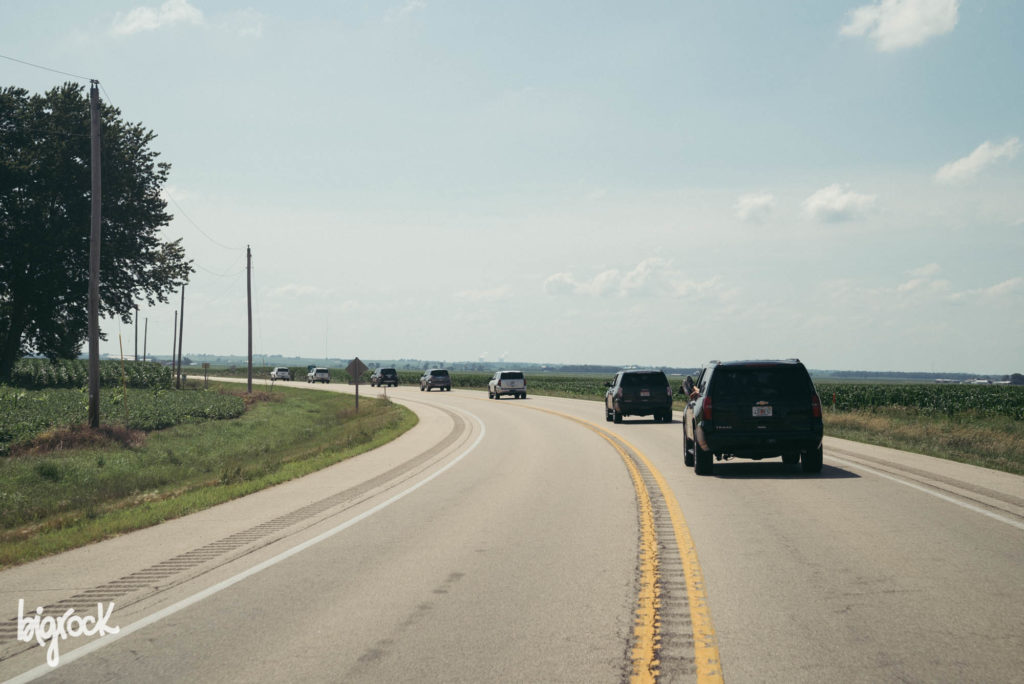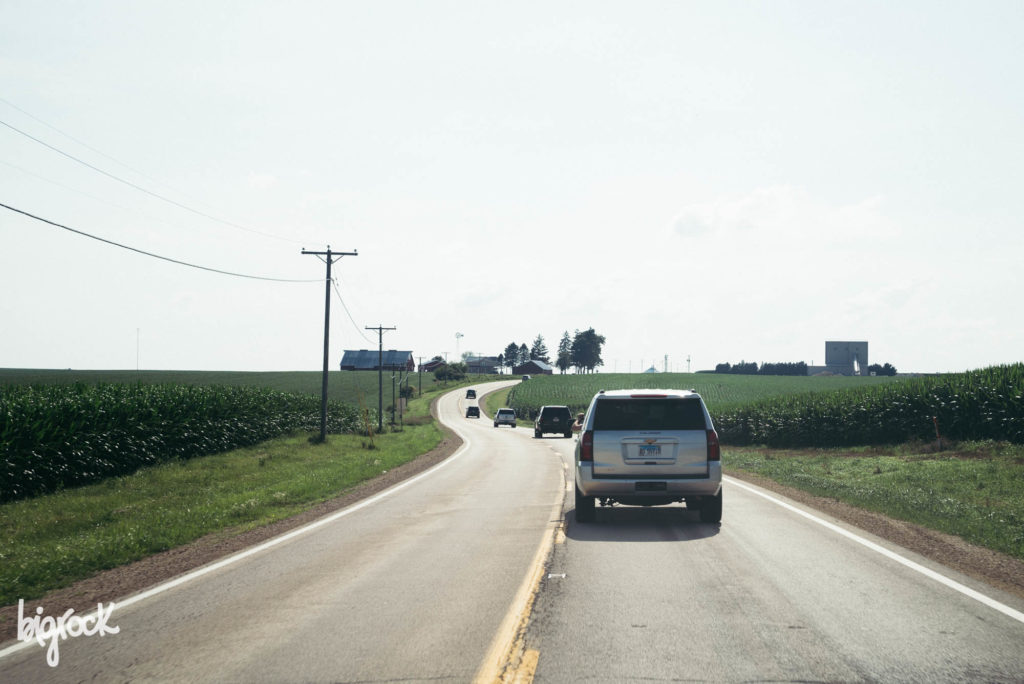 Ripartiamo e ci facciamo queste 200 miglia in mezzo a giardini perfetti e campi di pannocchie.