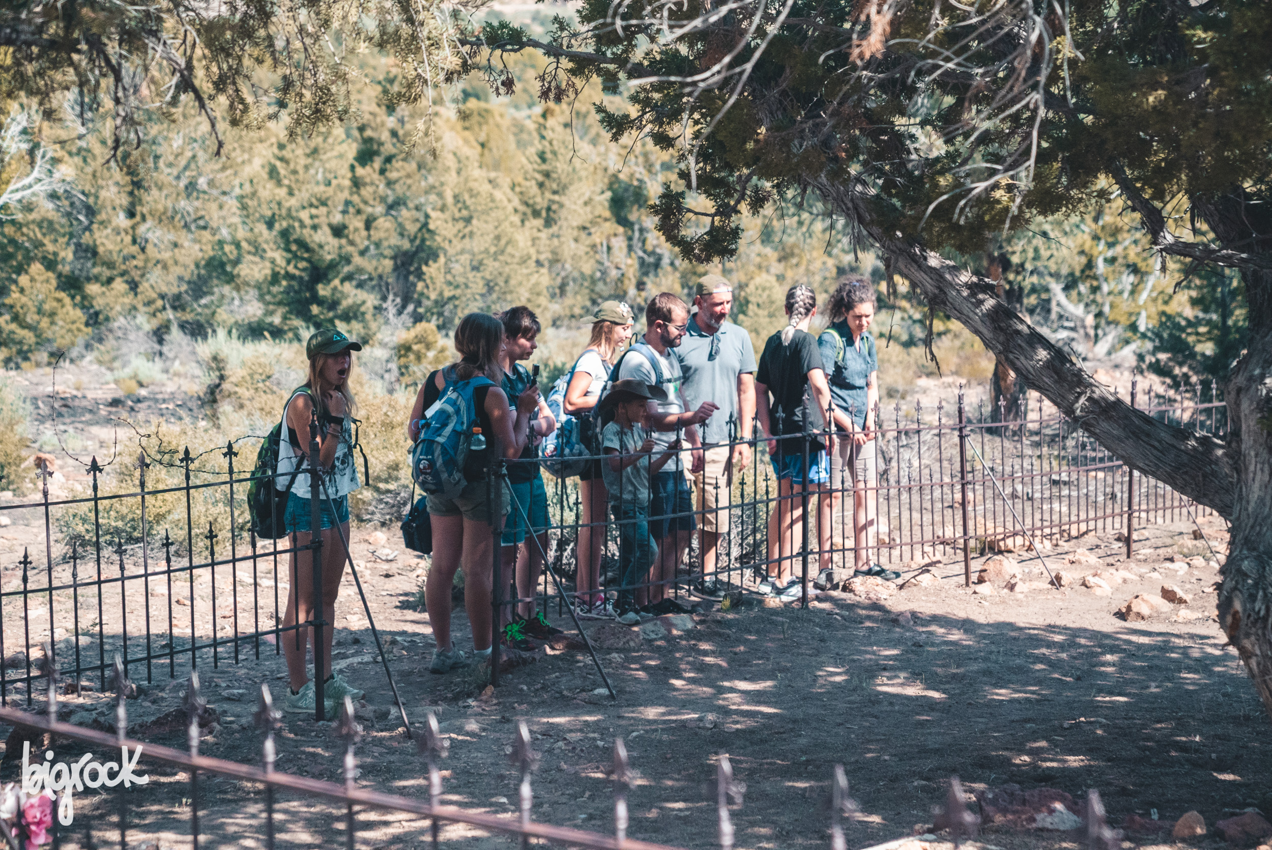 Arriviamo ad un cimitero disperso tra gli alberi, scopriamo essere di un’altra ghost town lì accanto, di cui però rimane solo qualche muro diroccato e poco più.