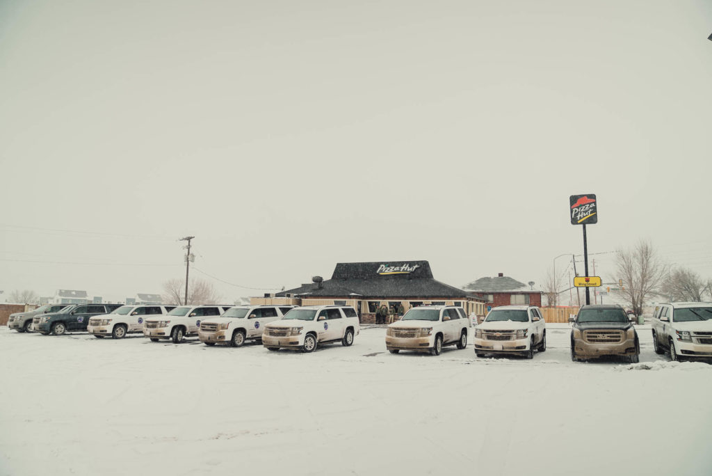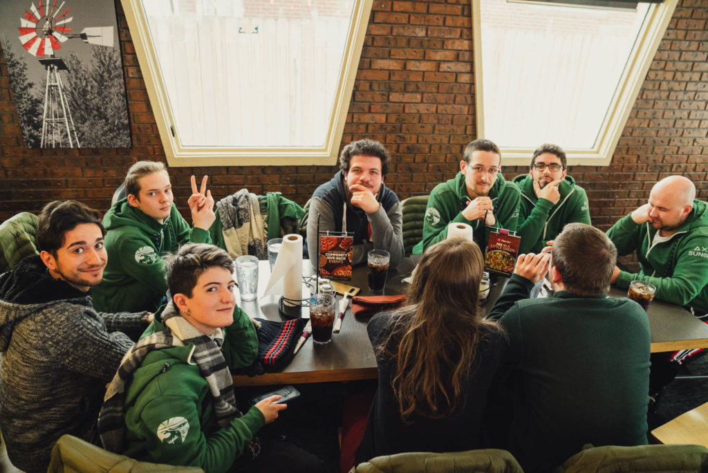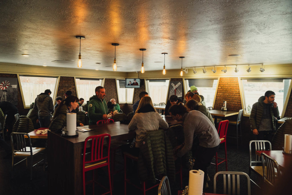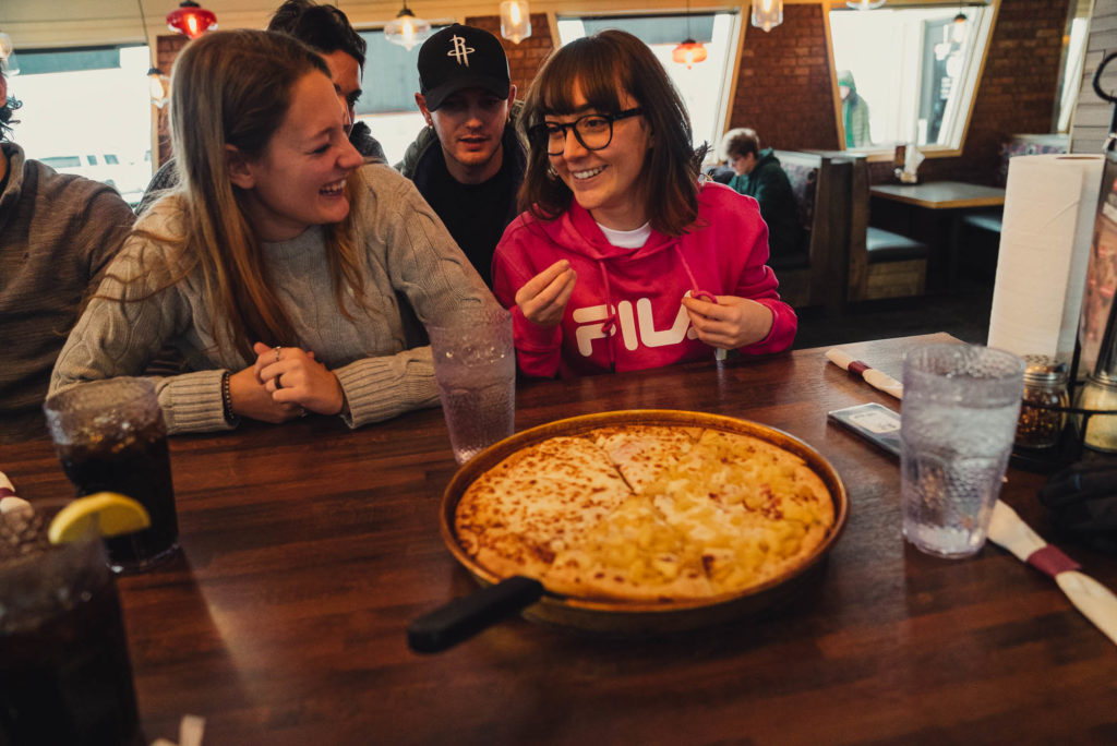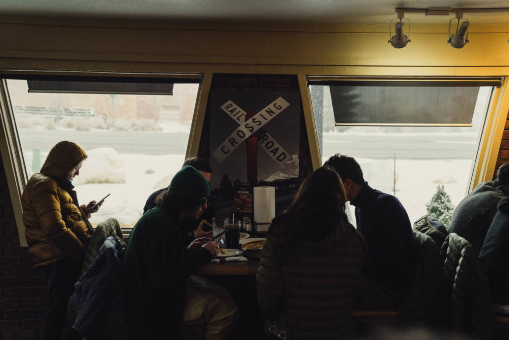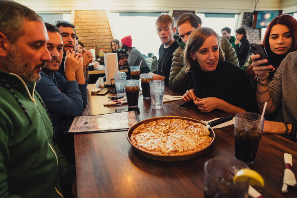 Prendiamo d’assalto un Pizza Hut. Le vecchiette che lo gestiscono sono impallidite quando ci hanno visto entrare e ci confessano non avere abbastanza panetti per tutti, che di solito la domenica viene si e no il prete e magari i soliti due clienti fissi solamente per provarci con loro.