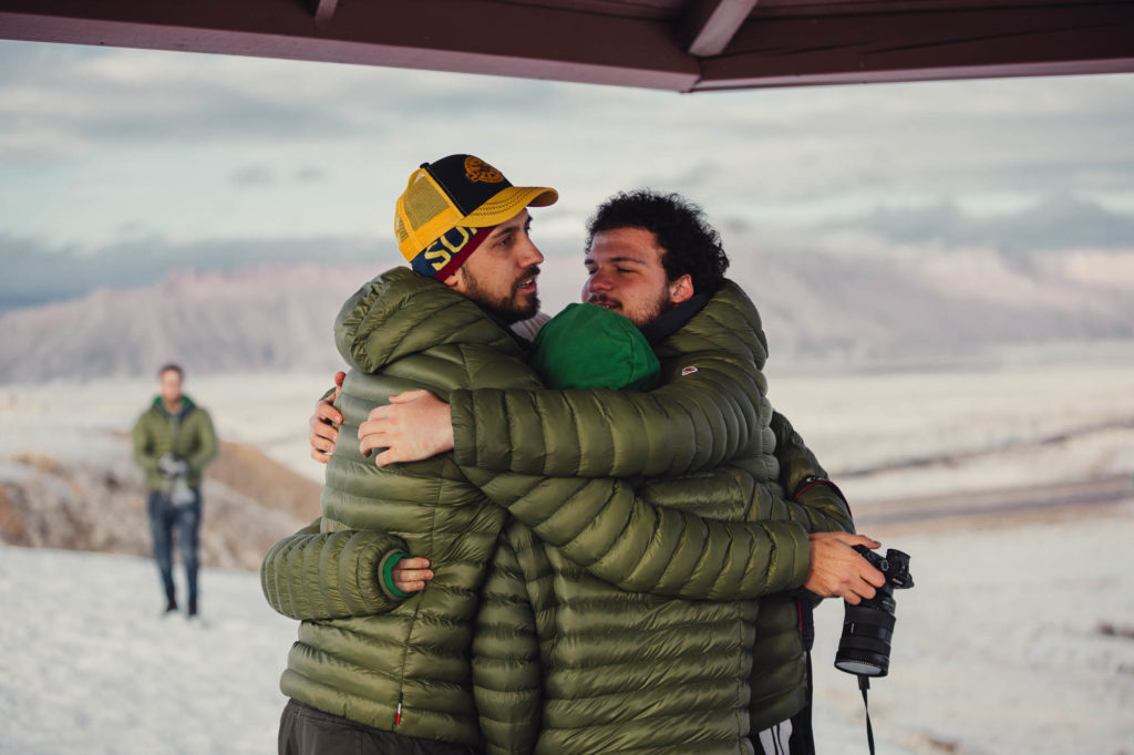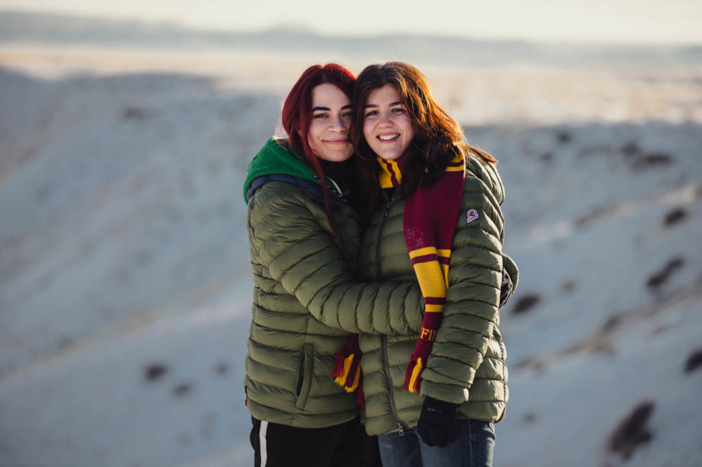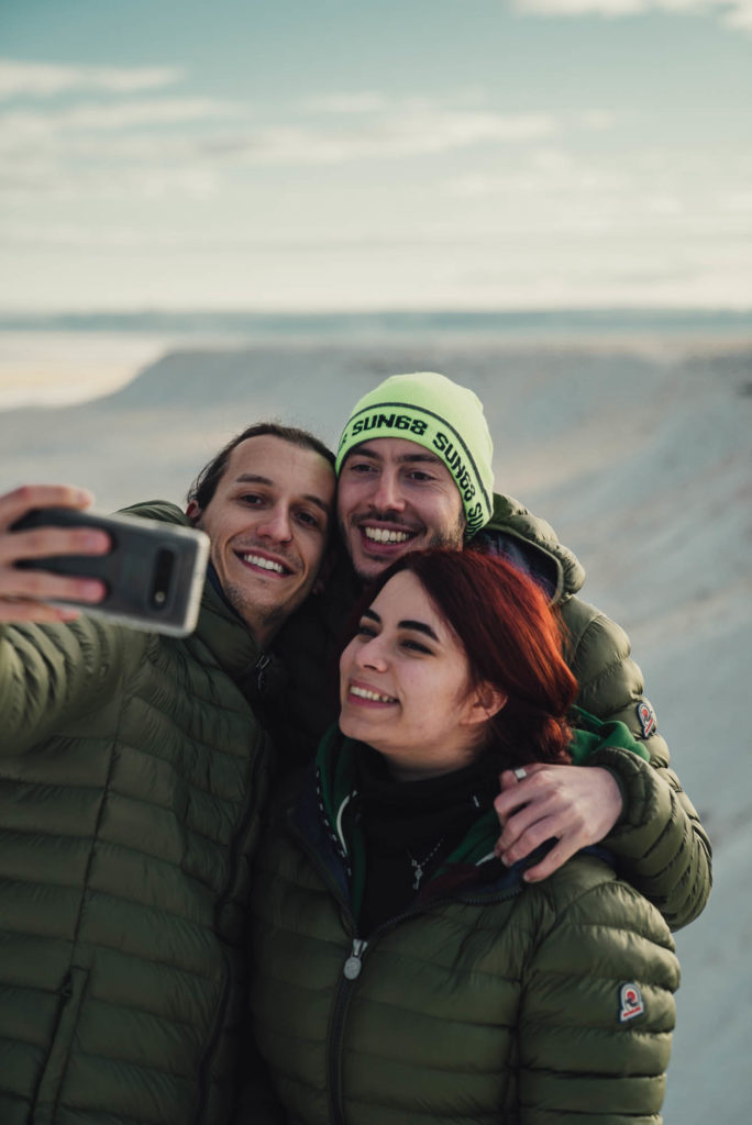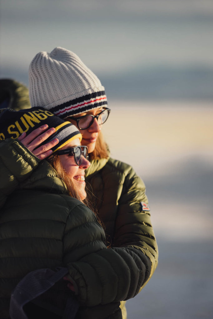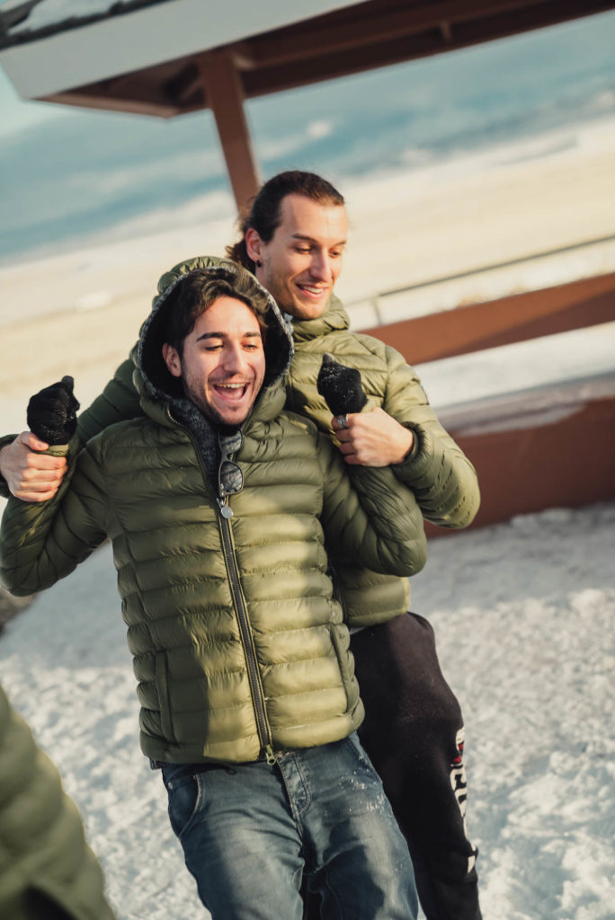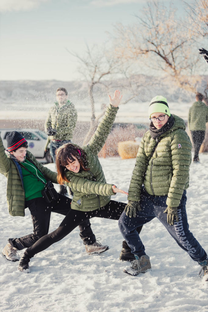 Ci fermiamo a goderci il panorama imbiancato dalla neve e scaldato dalla luce del sole al tramonto. Il termometro segna meno 6. Non ce ne rendiamo conto se non dopo qualche minuto in cui le mani fanno fatica a muoversi. Facciamo milioni di foto, ci tiriamo le palle di neve.