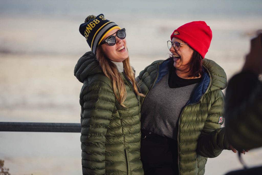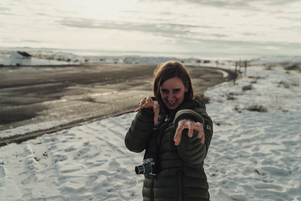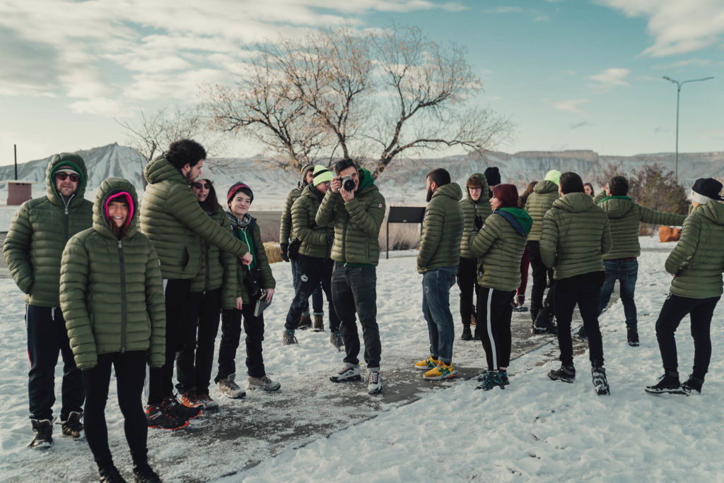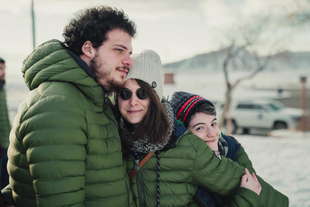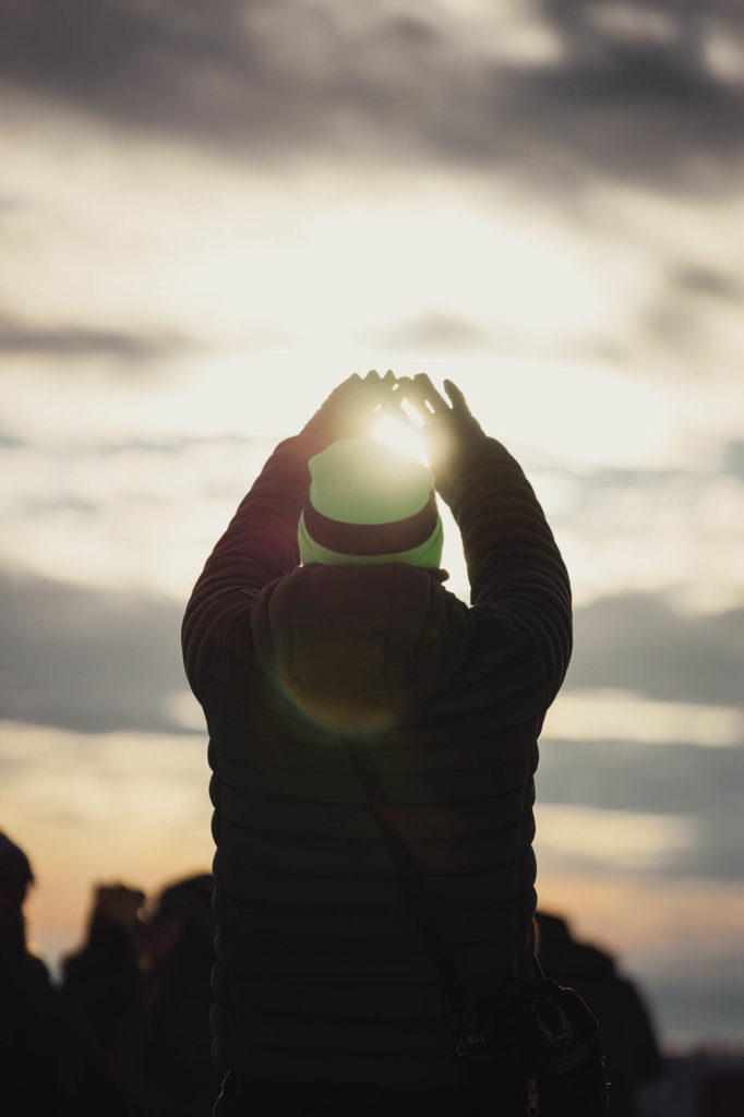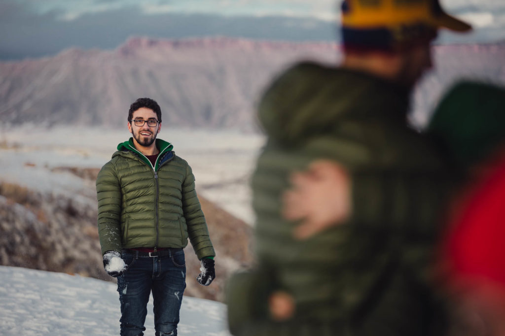 Ci fermiamo a goderci il panorama imbiancato dalla neve e scaldato dalla luce del sole al tramonto. Il termometro segna meno 6. Non ce ne rendiamo conto se non dopo qualche minuto in cui le mani fanno fatica a muoversi. Facciamo milioni di foto, ci tiriamo le palle di neve.