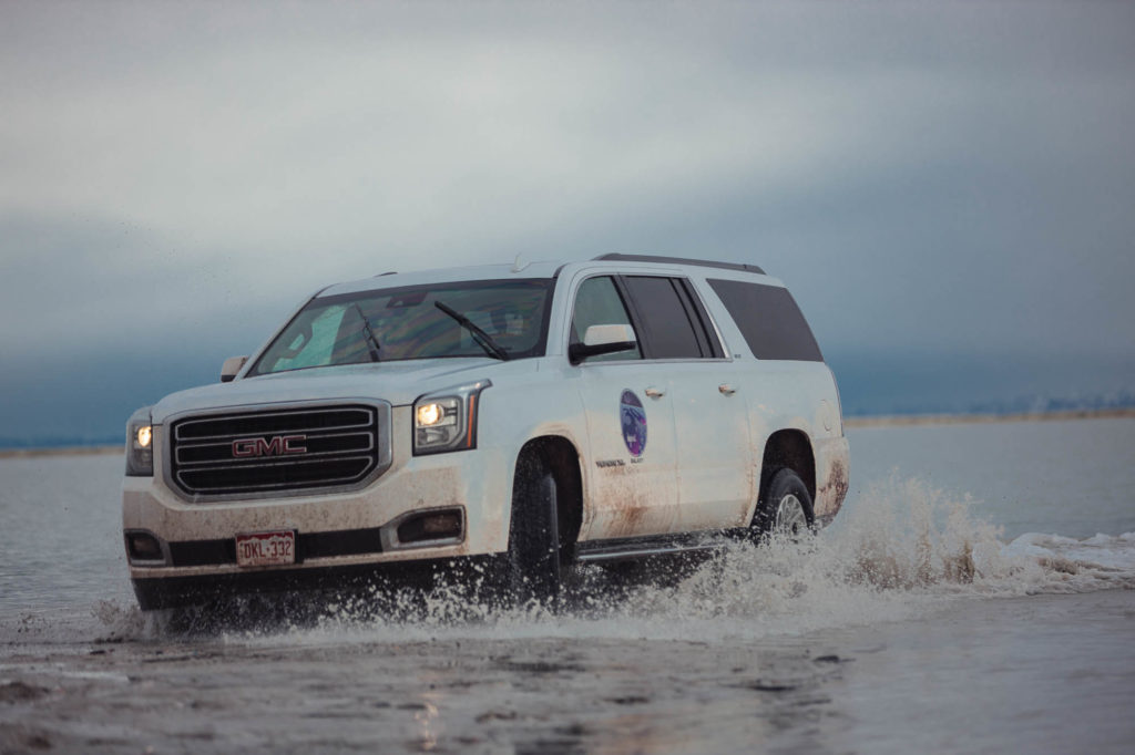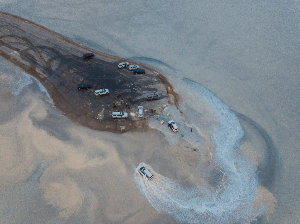 Questo però non ci ha mai fermati, quindi con molta titubanza (remore dall’ultimo viaggio dove qualcuno di noi si era impantanato) proviamo ad entrare con le auto nello specchio d’acqua, girarci e tornare indietro. Facciamo giri sempre più grandi. Non affondiamo.