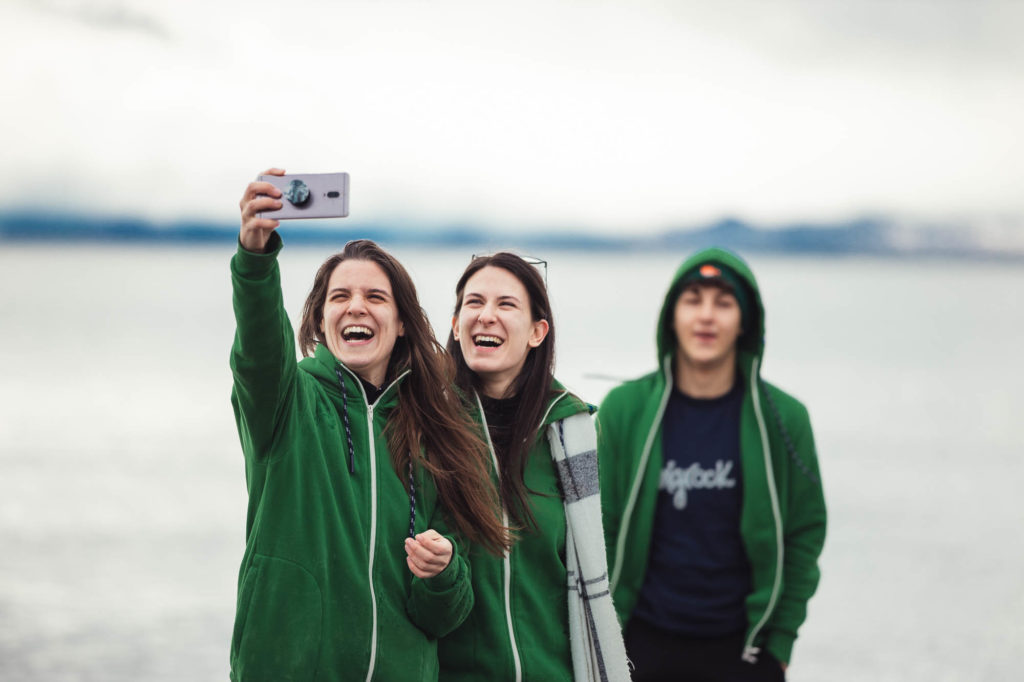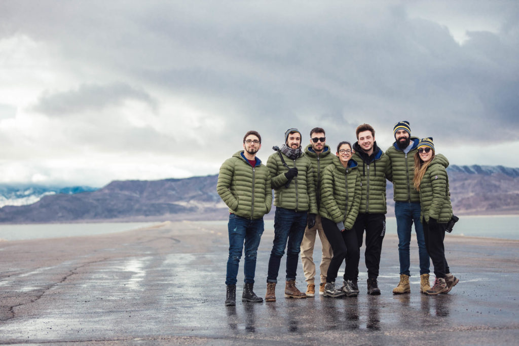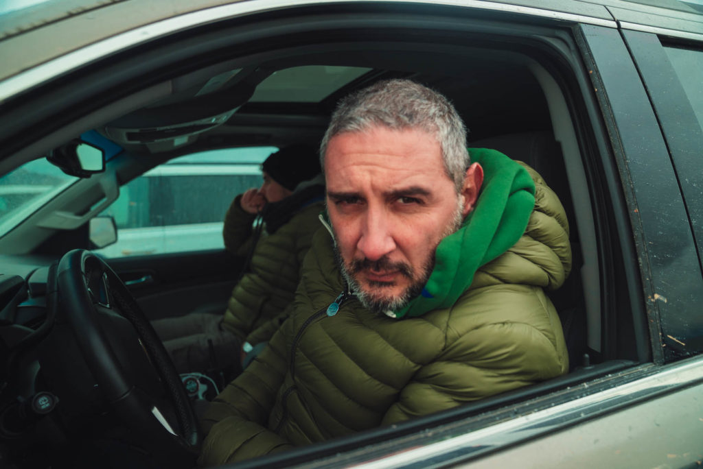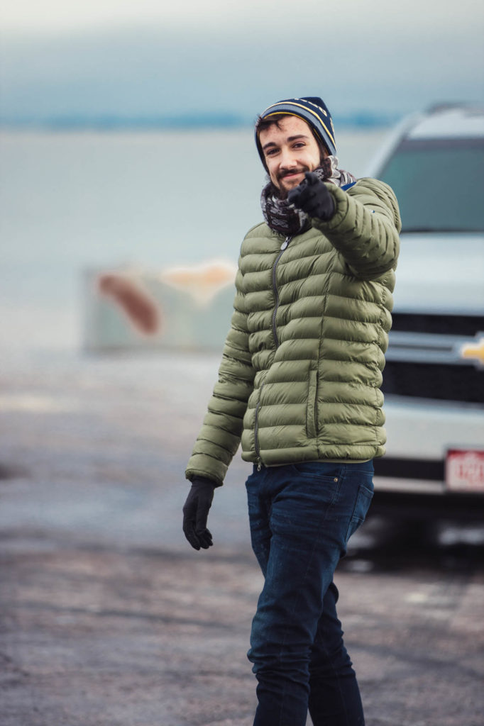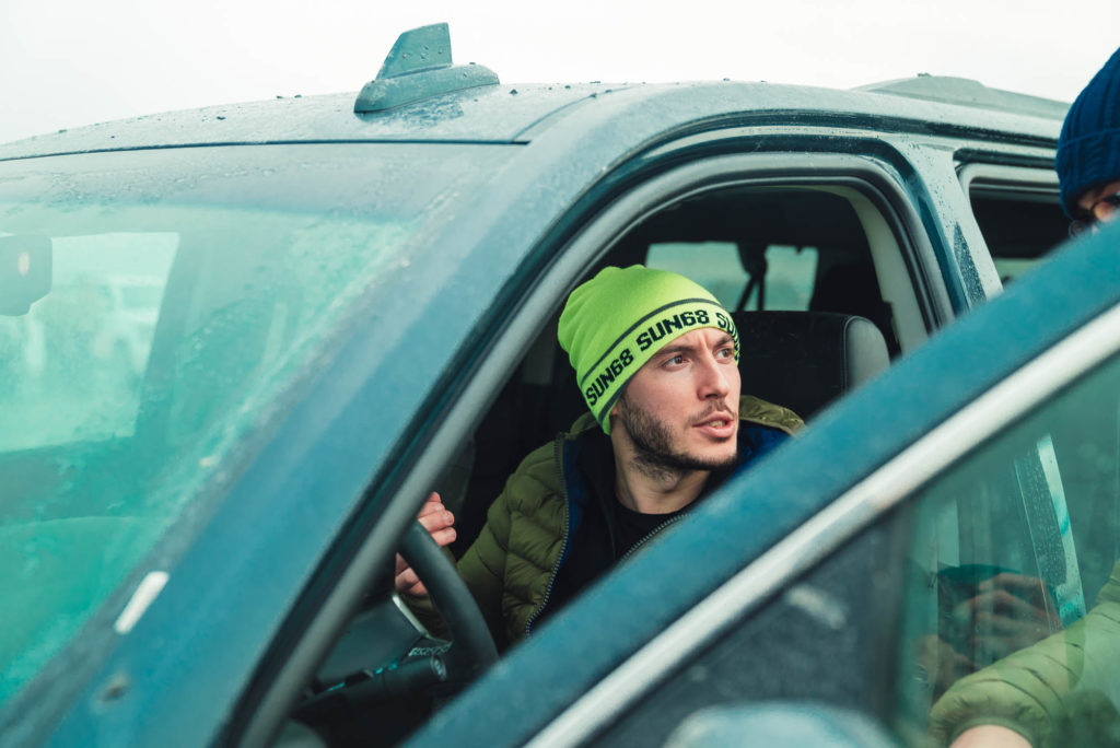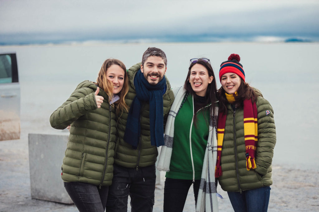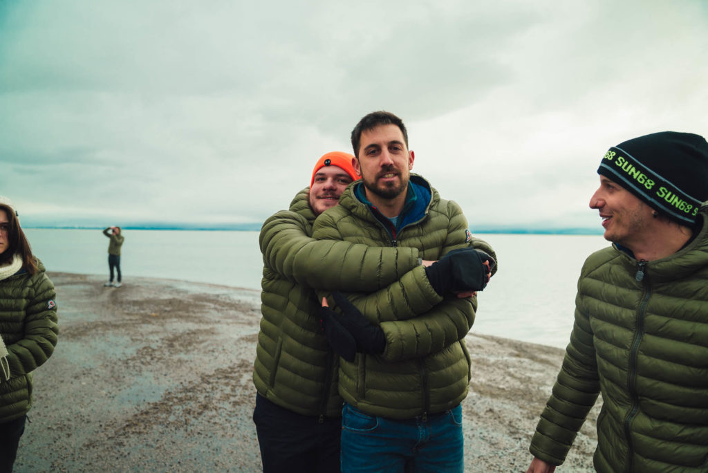 Ci abbracciamo, cerchiamo di scaldarci le mani uno con l’altro, ci facciamo gli scherzi, mentre gli altri prendono le auto e fanno gli idioti nell’acqua.