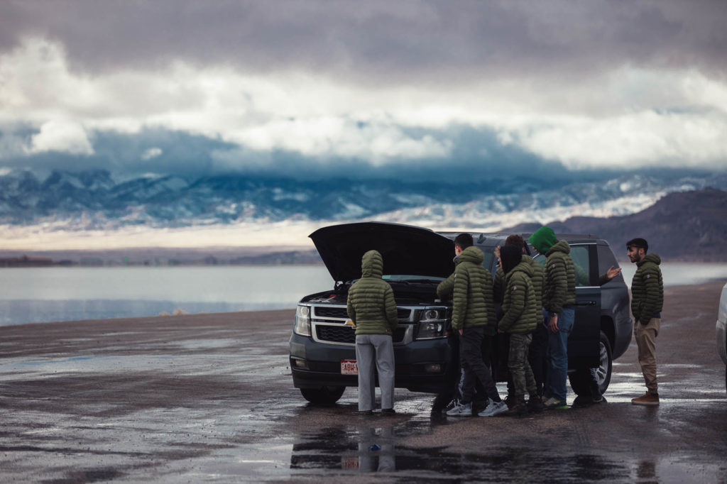 Mentre il carro attrezzi si incammina verso l’aeroporto di Salt Lake City, recuperiamo tutti al McDonalds e lo seguiamo.