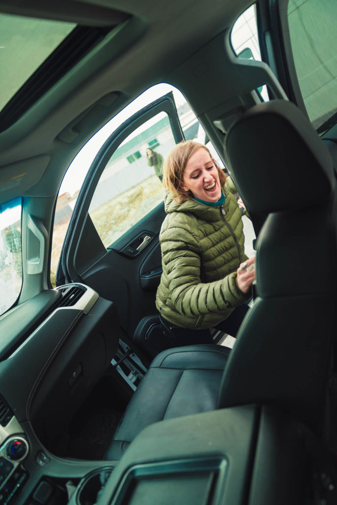 Laviamo tutte le macchine da cima a fondo, inventandoci qualsiasi cosa (balletti di TikTok compresi) per tenerci al caldo mentre puliamo.