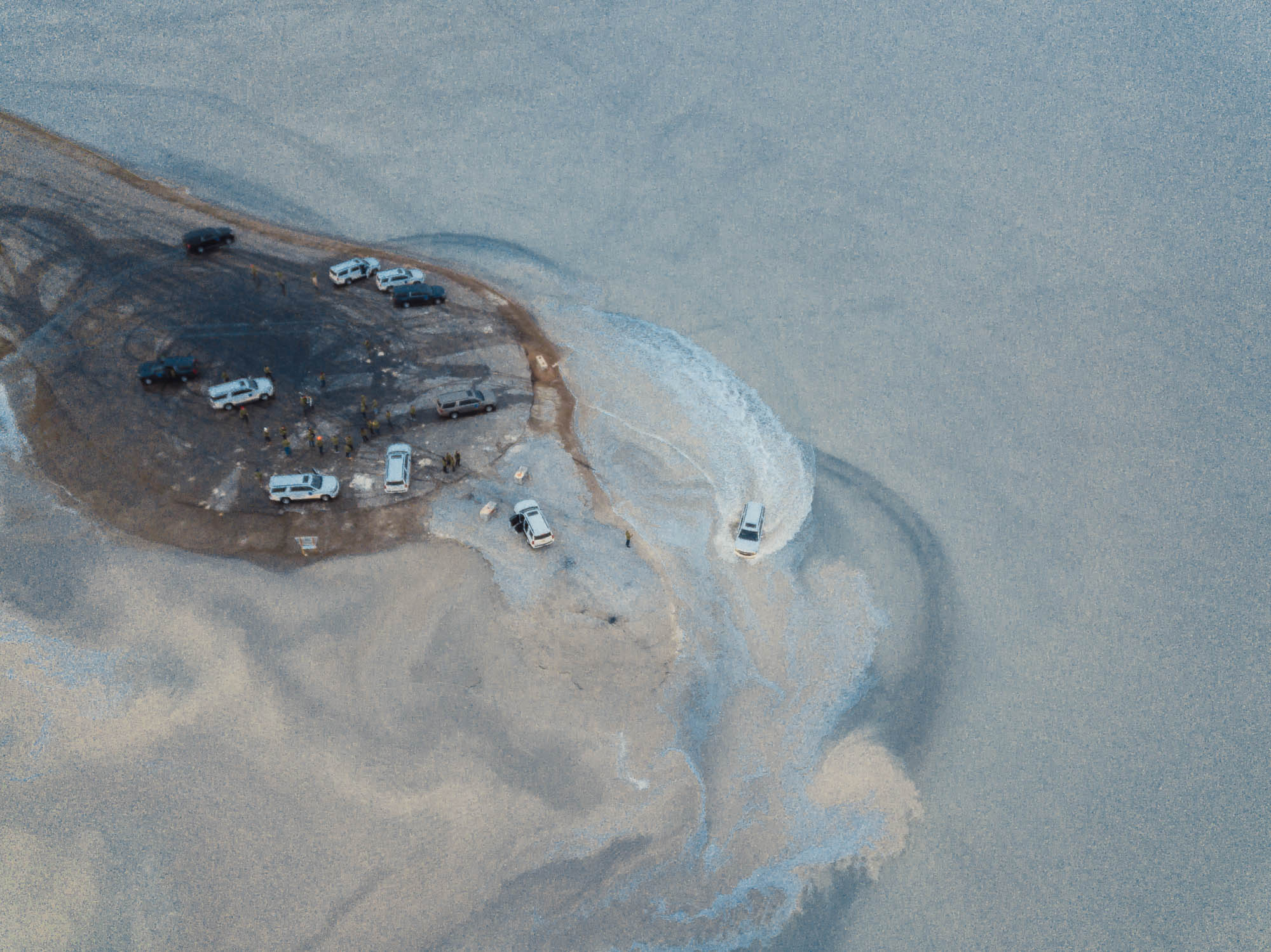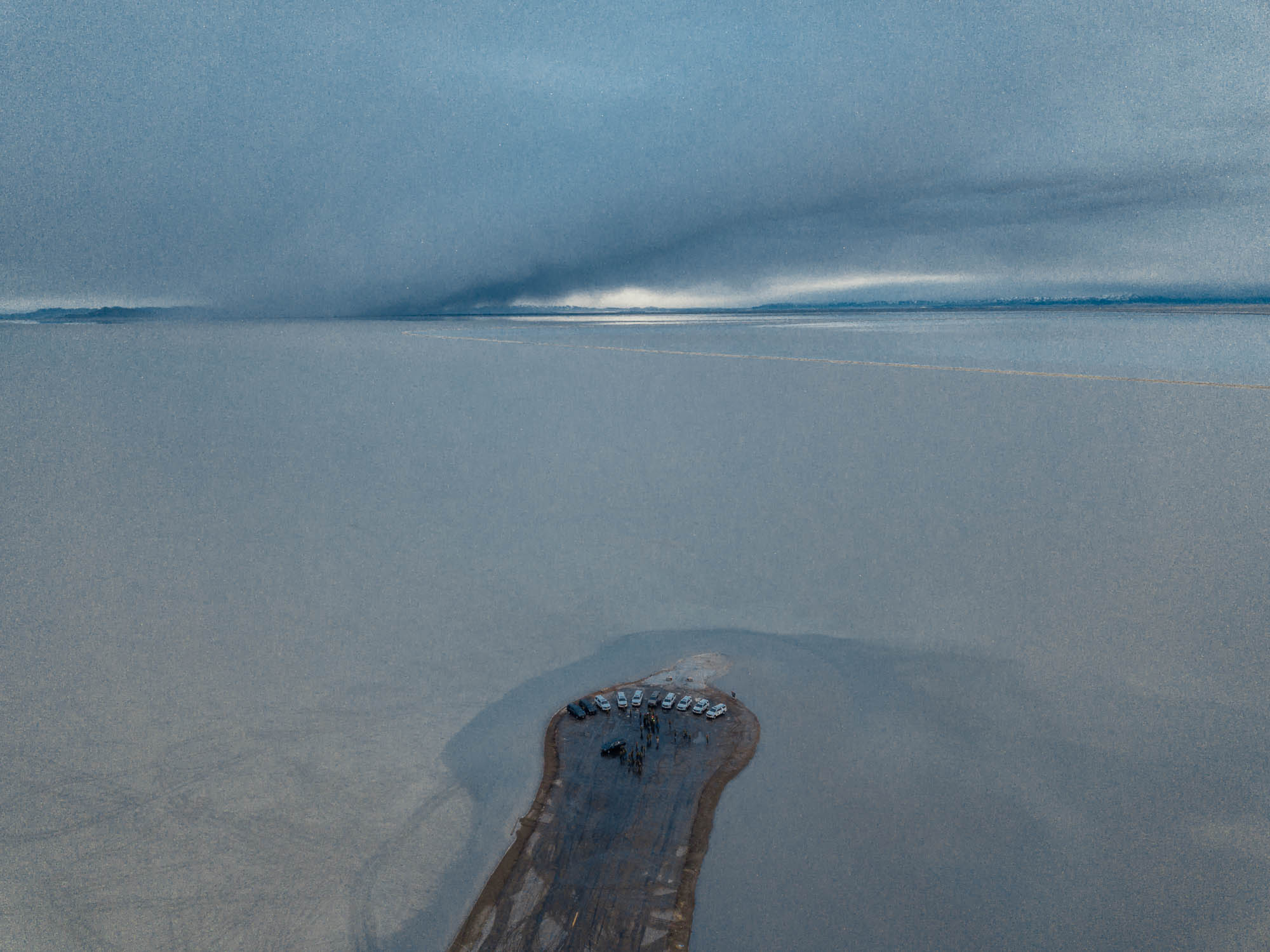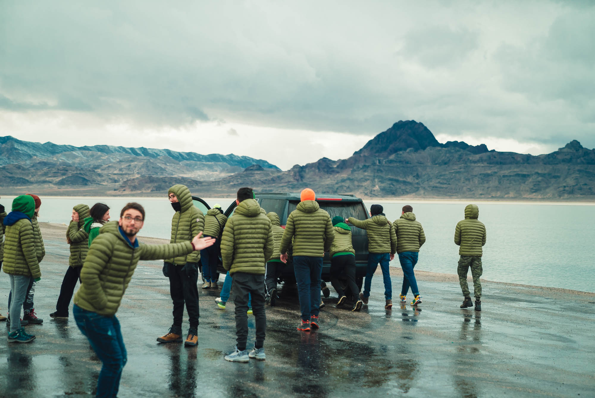 Questo però non ci ha mai fermati, quindi con molta titubanza (remore dall’ultimo viaggio dove qualcuno di noi si era impantanato) proviamo ad entrare con le auto nello specchio d’acqua, girarci e tornare indietro. Facciamo giri sempre più grandi. Non affondiamo.