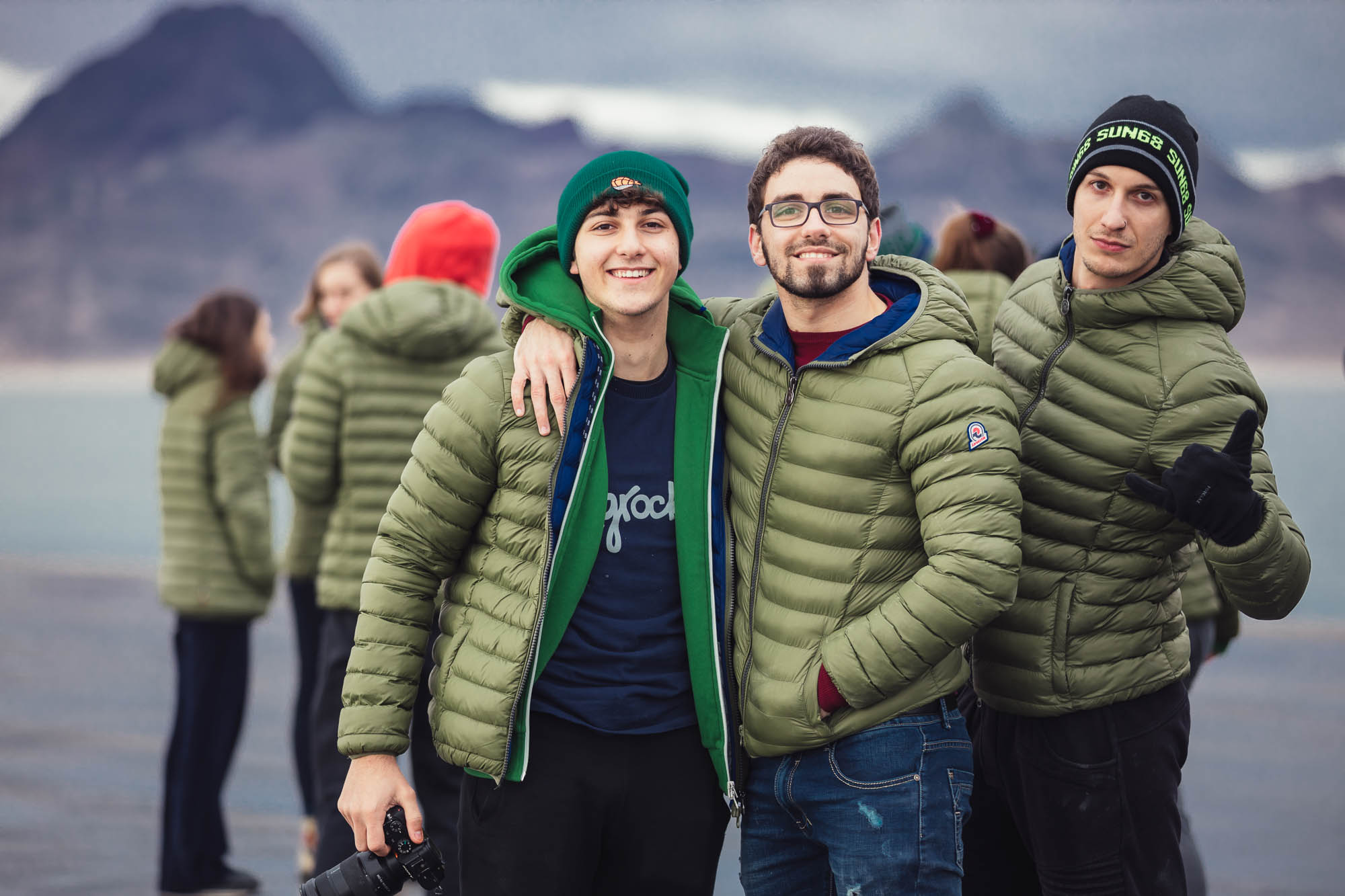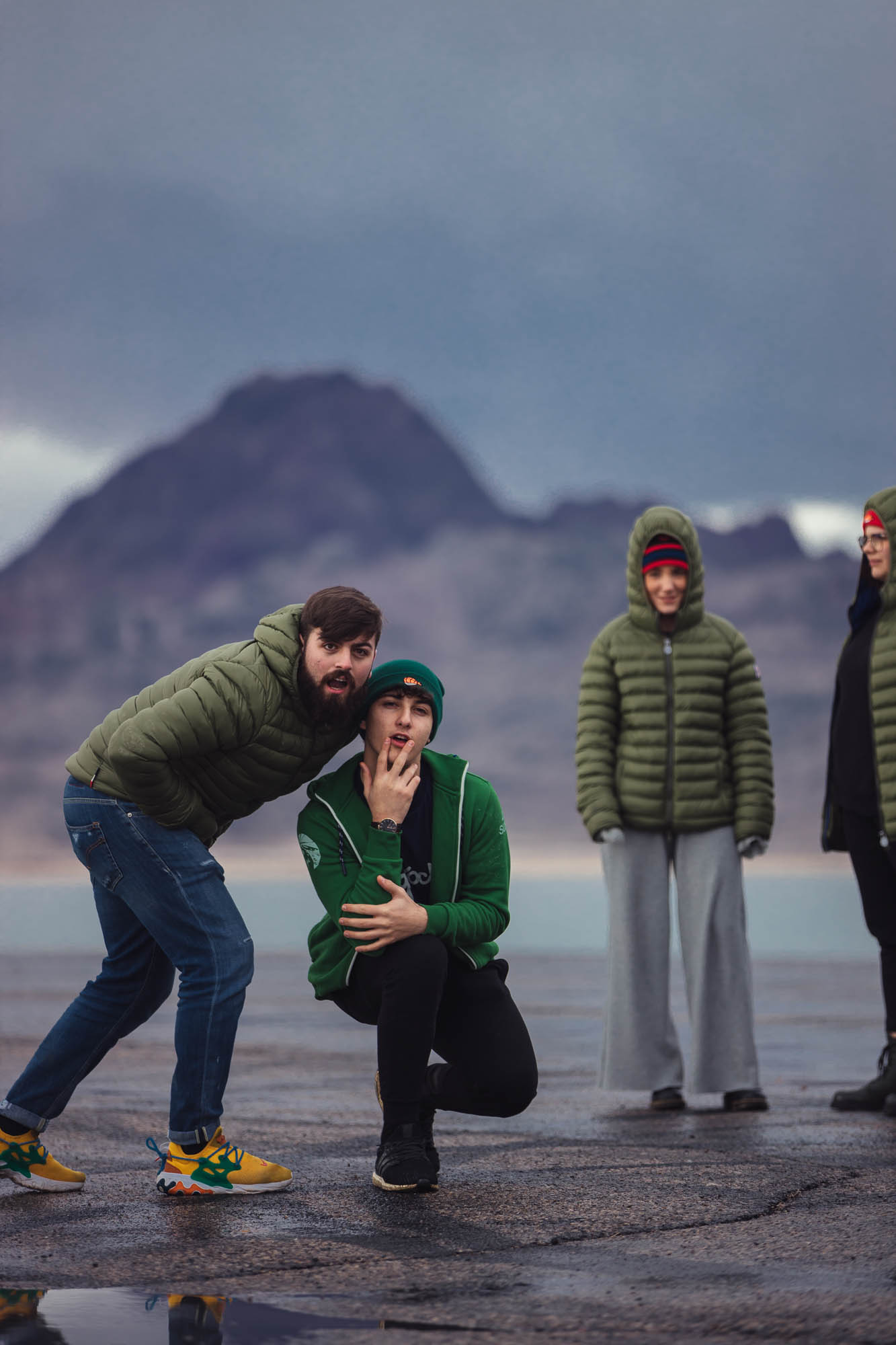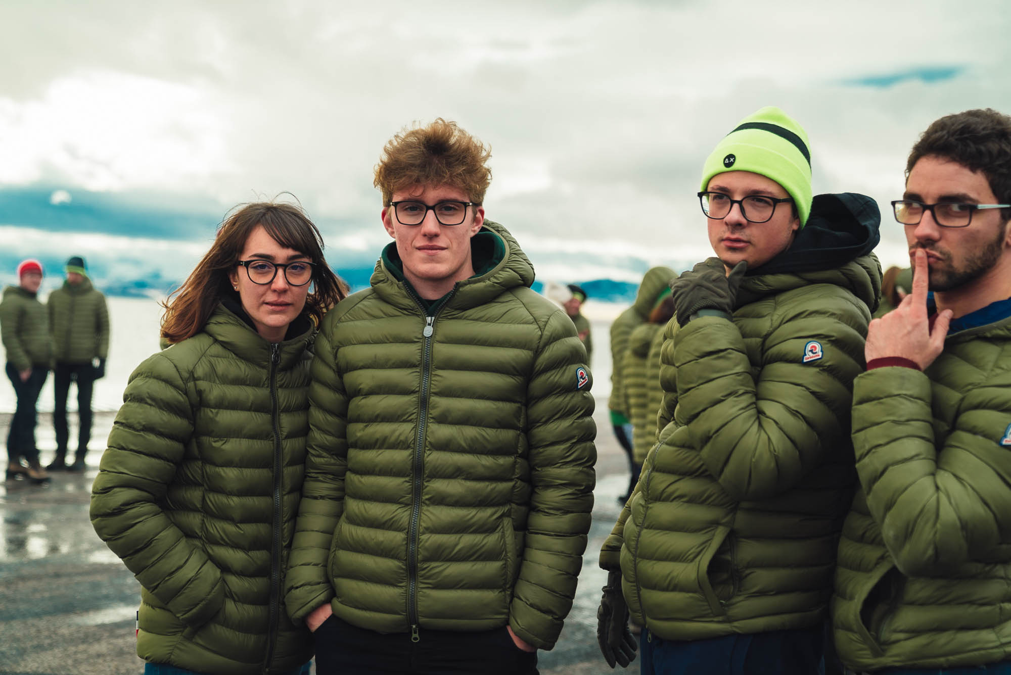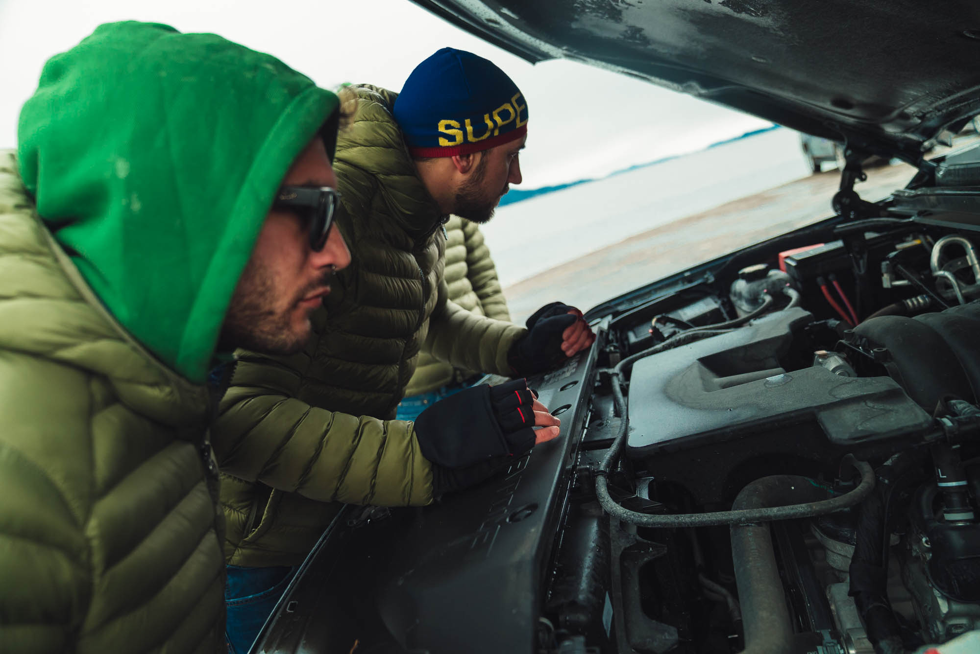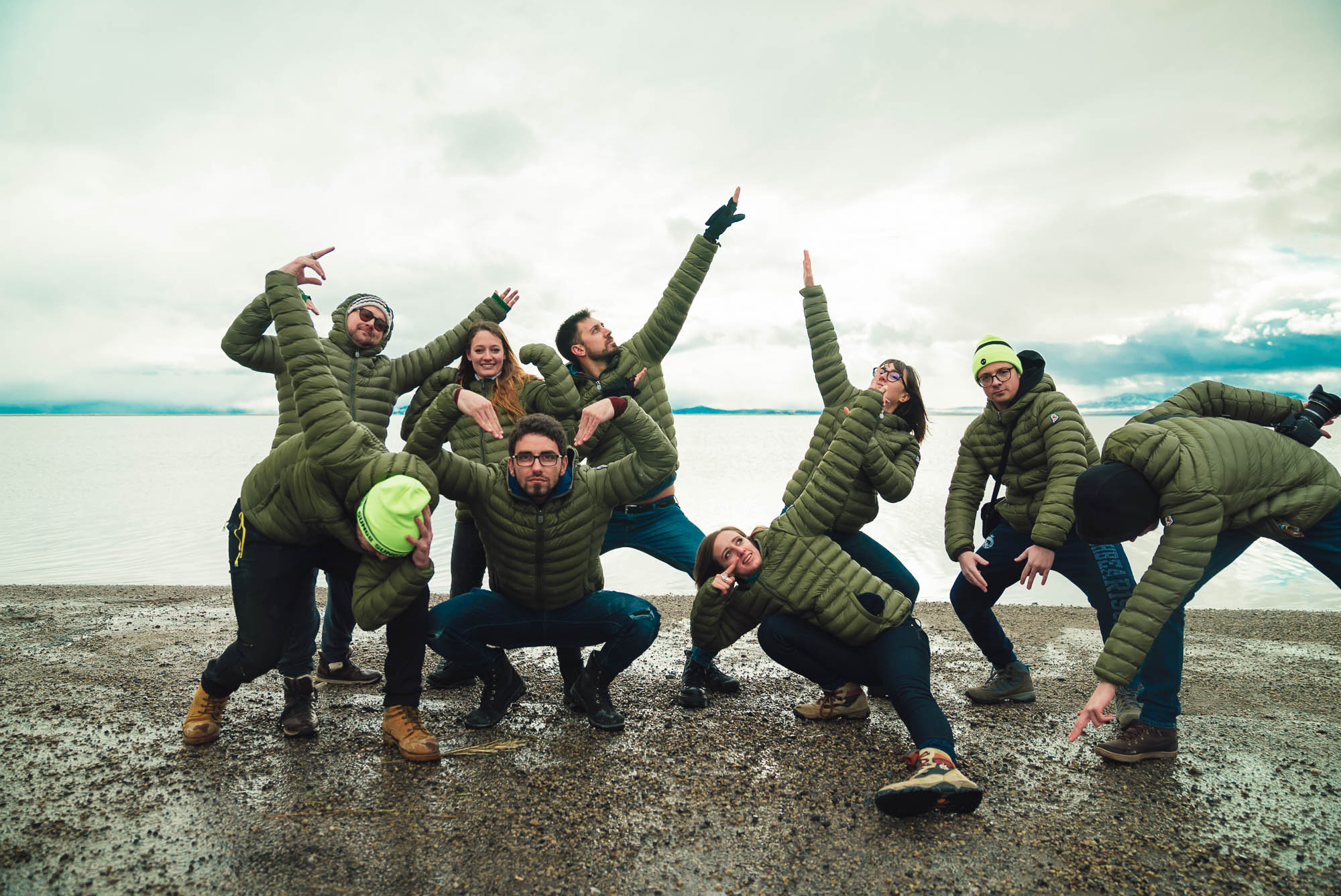 Ci abbracciamo, cerchiamo di scaldarci le mani uno con l’altro, ci facciamo gli scherzi, mentre gli altri prendono le auto e fanno gli idioti nell’acqua.