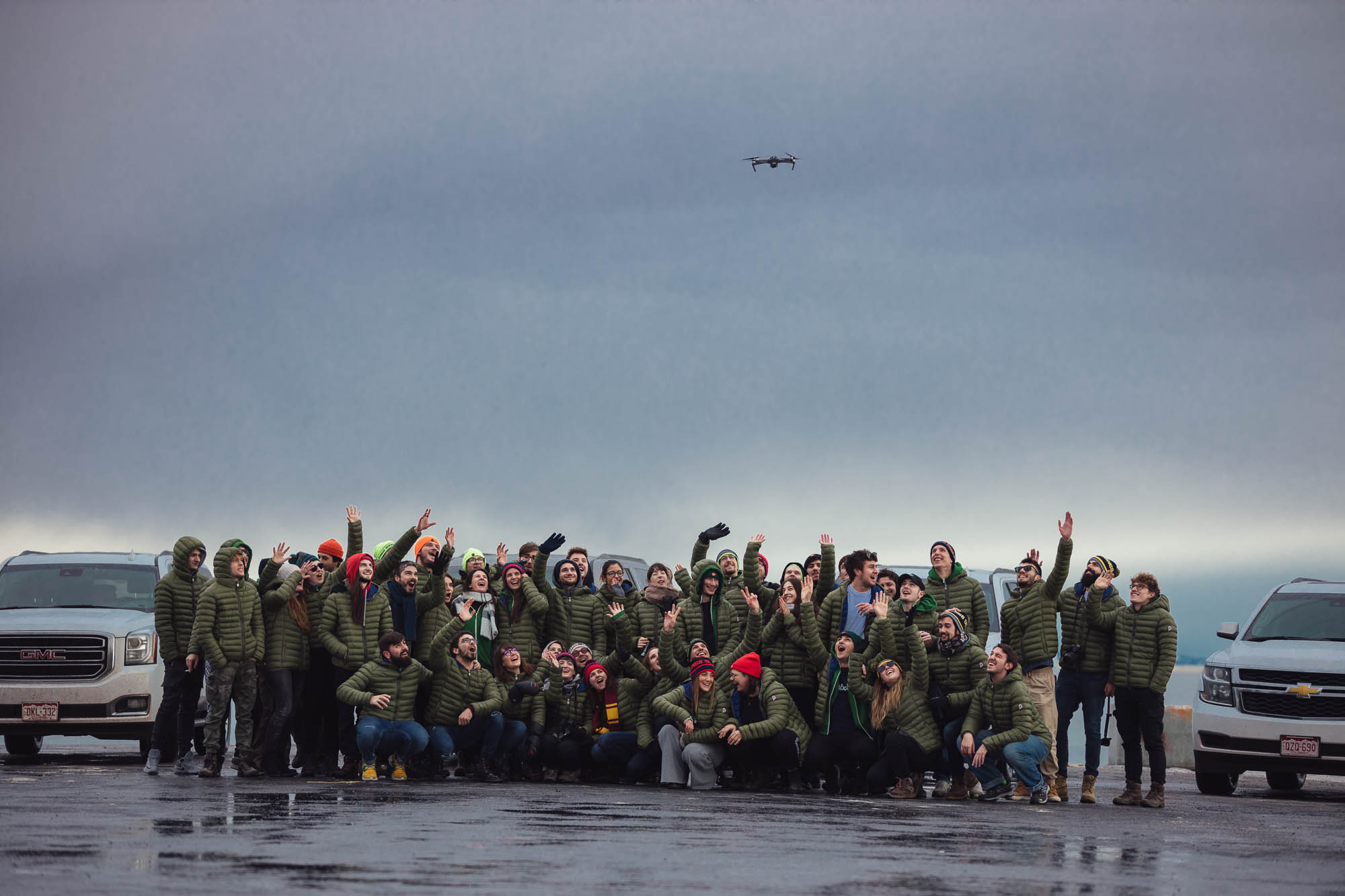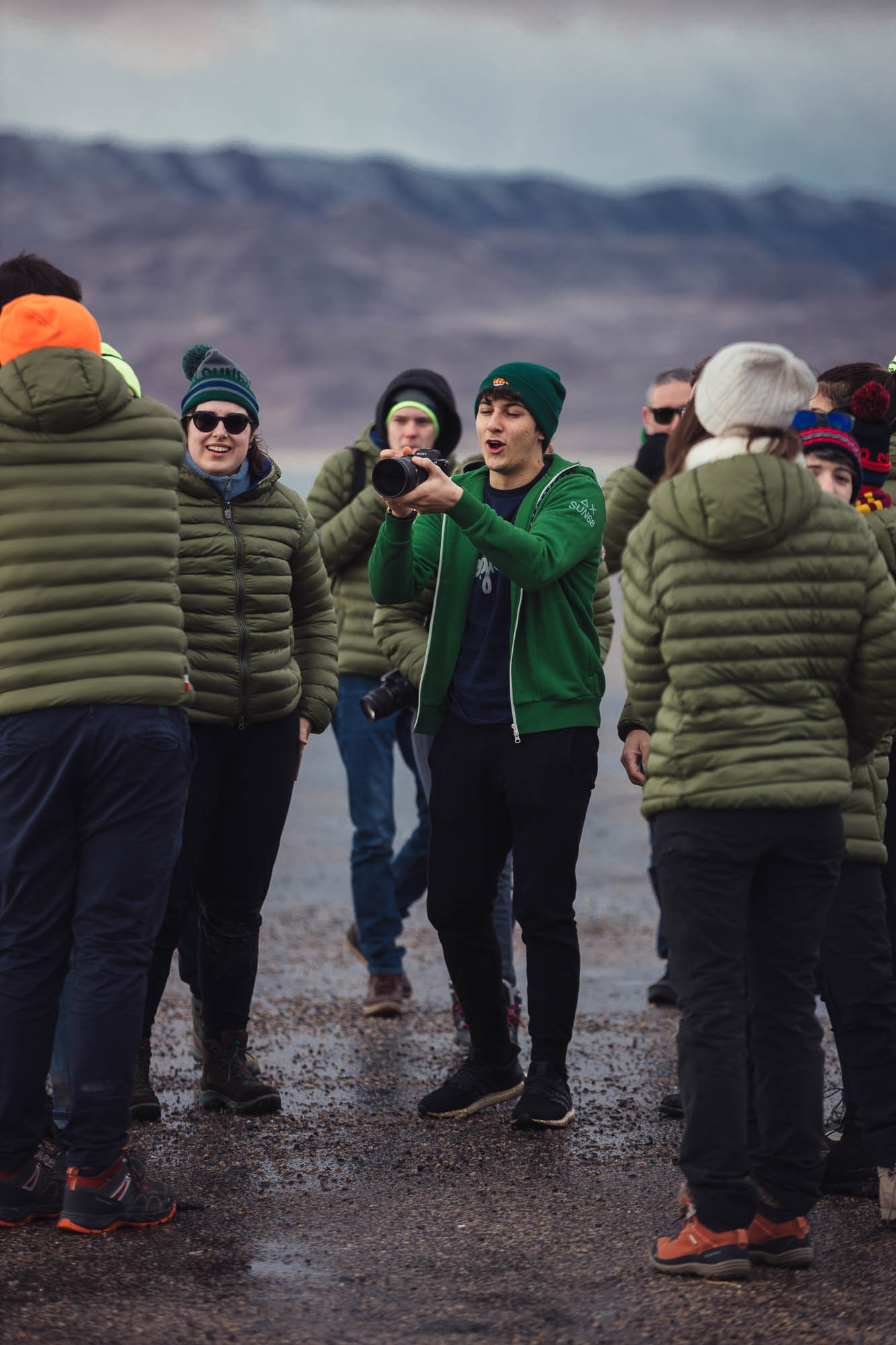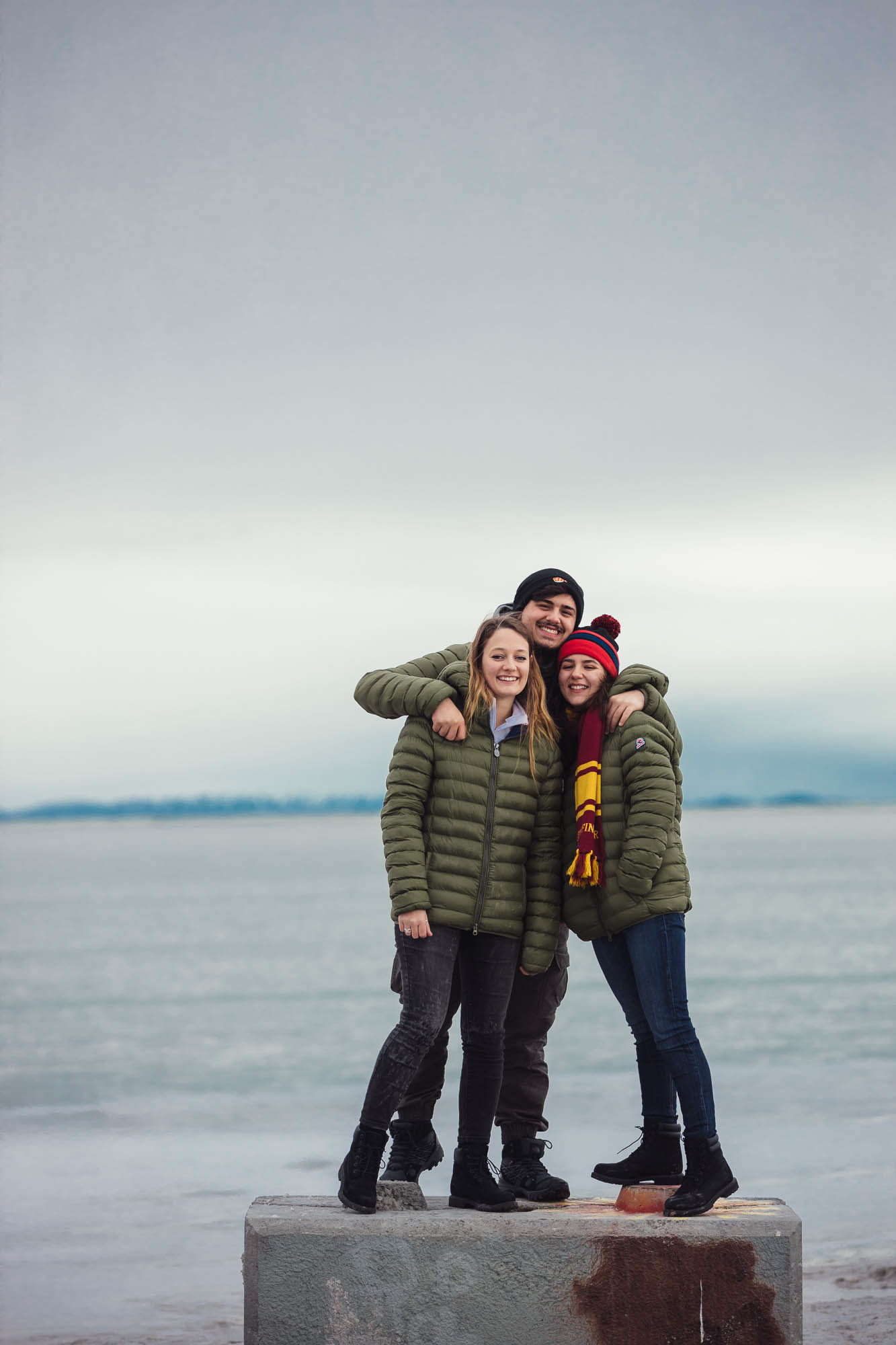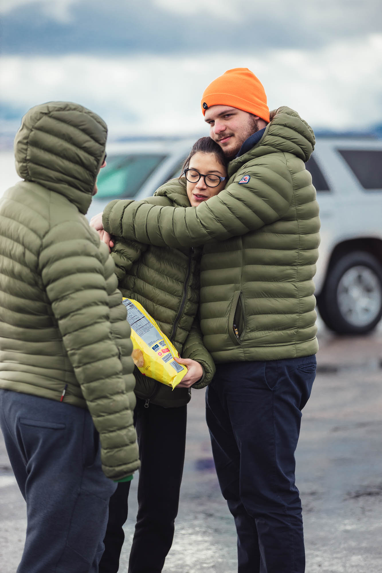 Ci abbracciamo, cerchiamo di scaldarci le mani uno con l’altro, ci facciamo gli scherzi, mentre gli altri prendono le auto e fanno gli idioti nell’acqua.