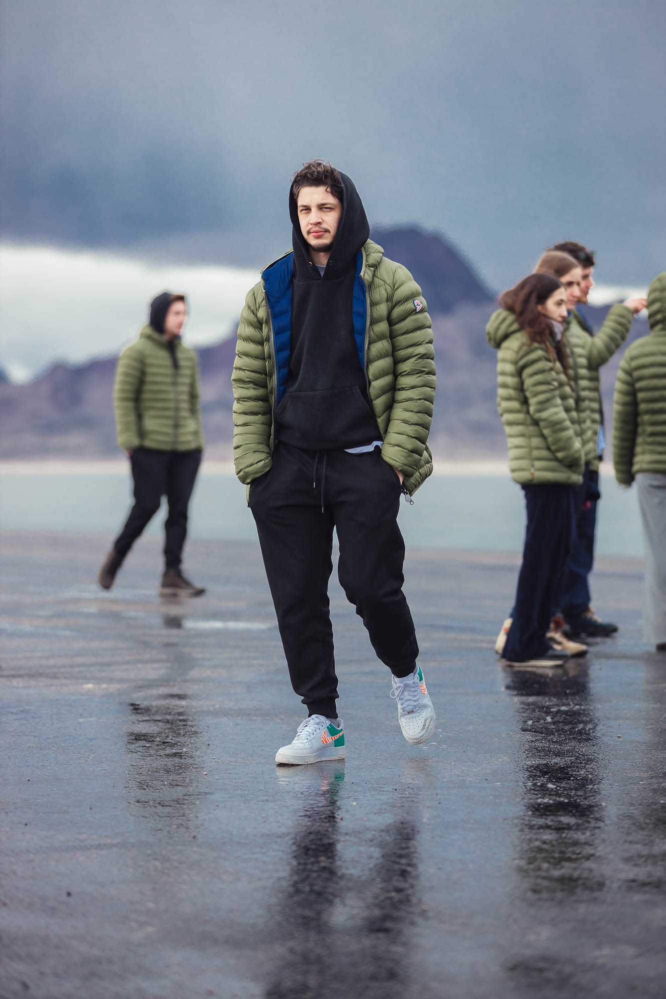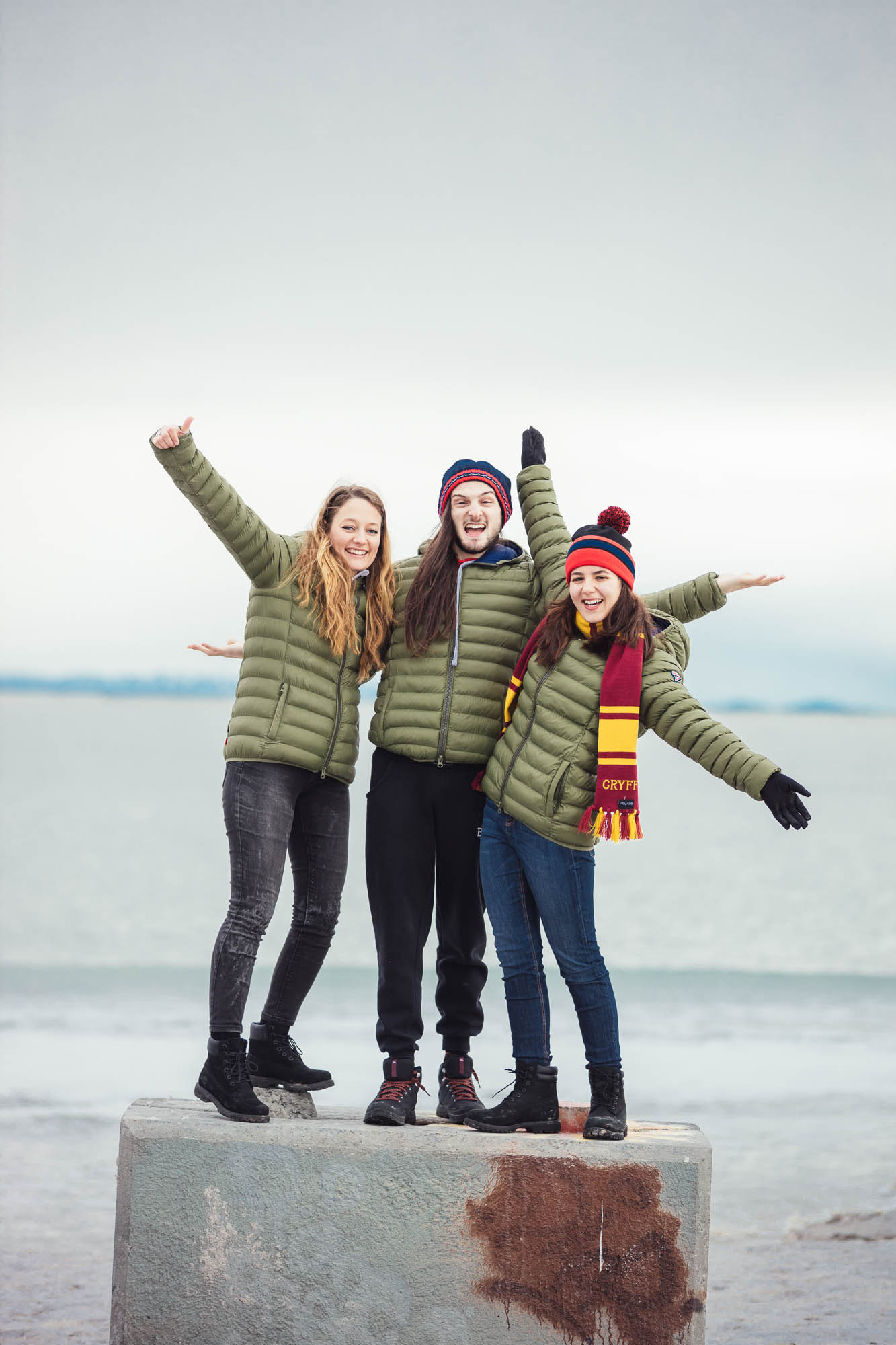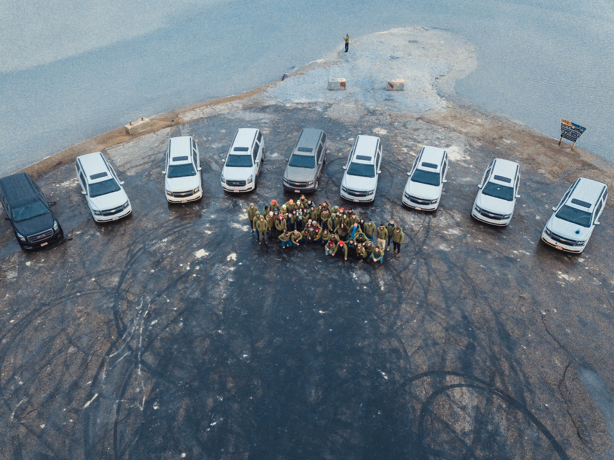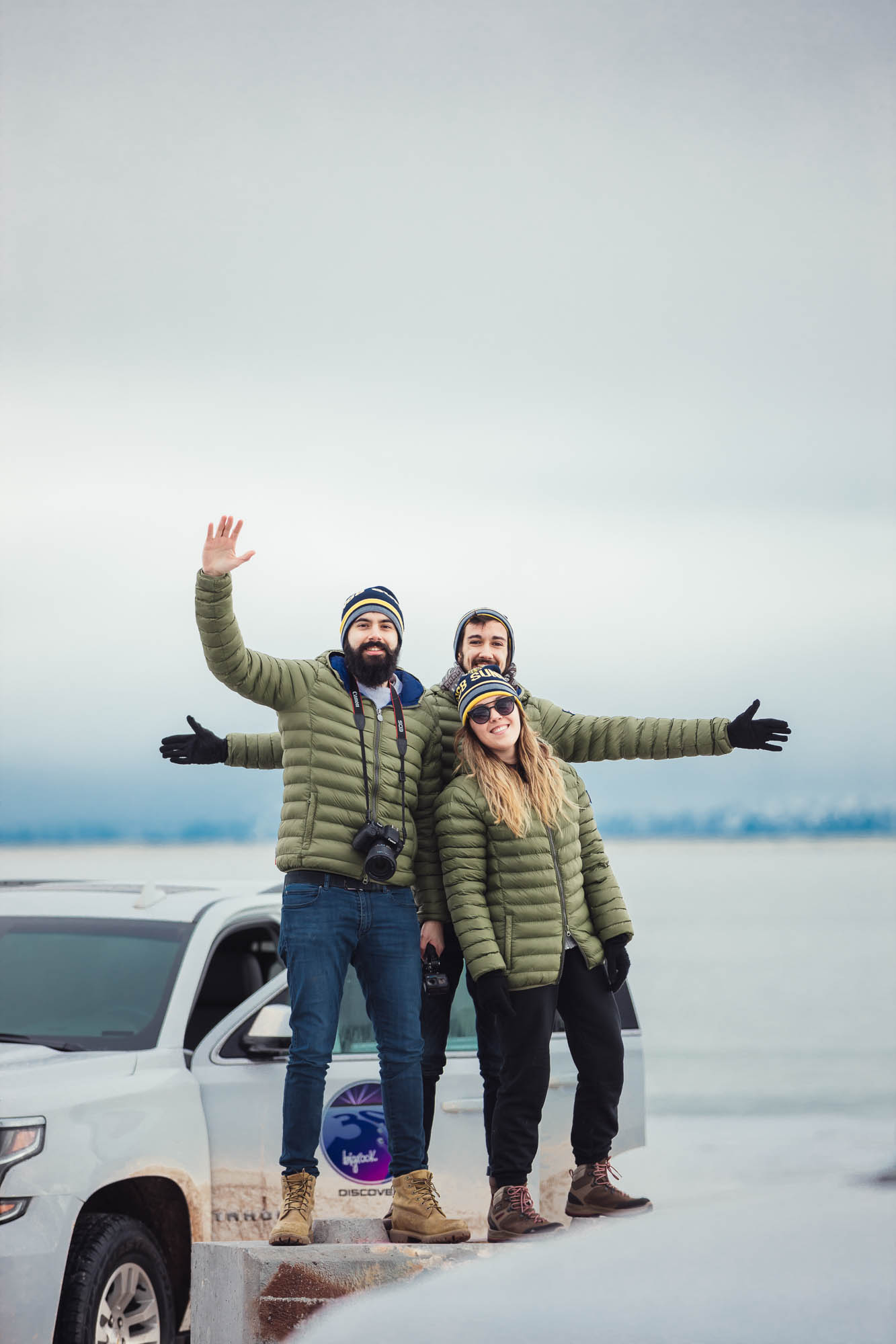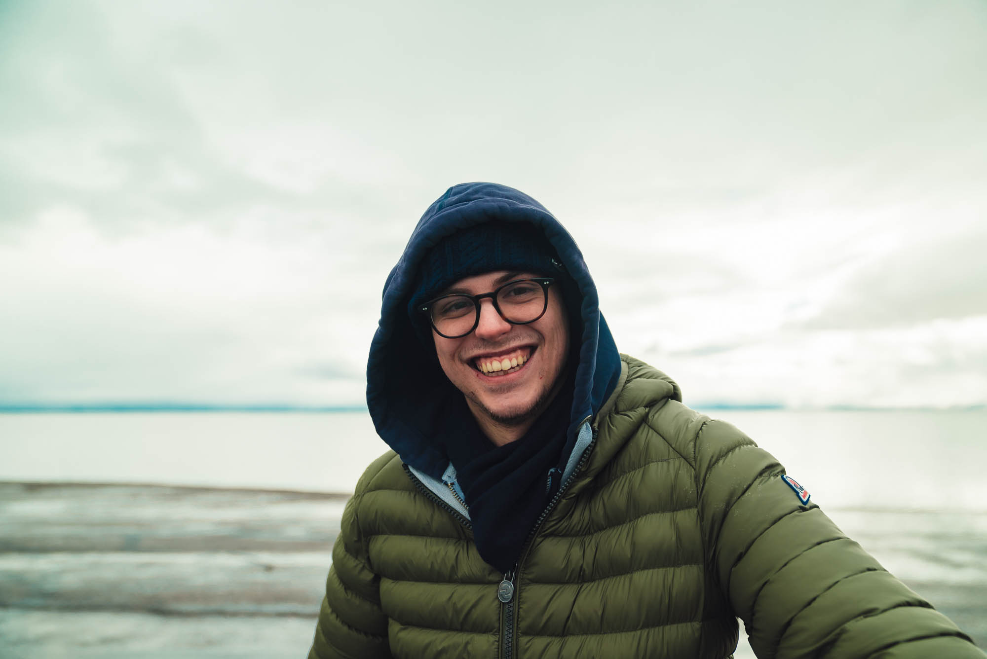 Ci abbracciamo, cerchiamo di scaldarci le mani uno con l’altro, ci facciamo gli scherzi, mentre gli altri prendono le auto e fanno gli idioti nell’acqua.