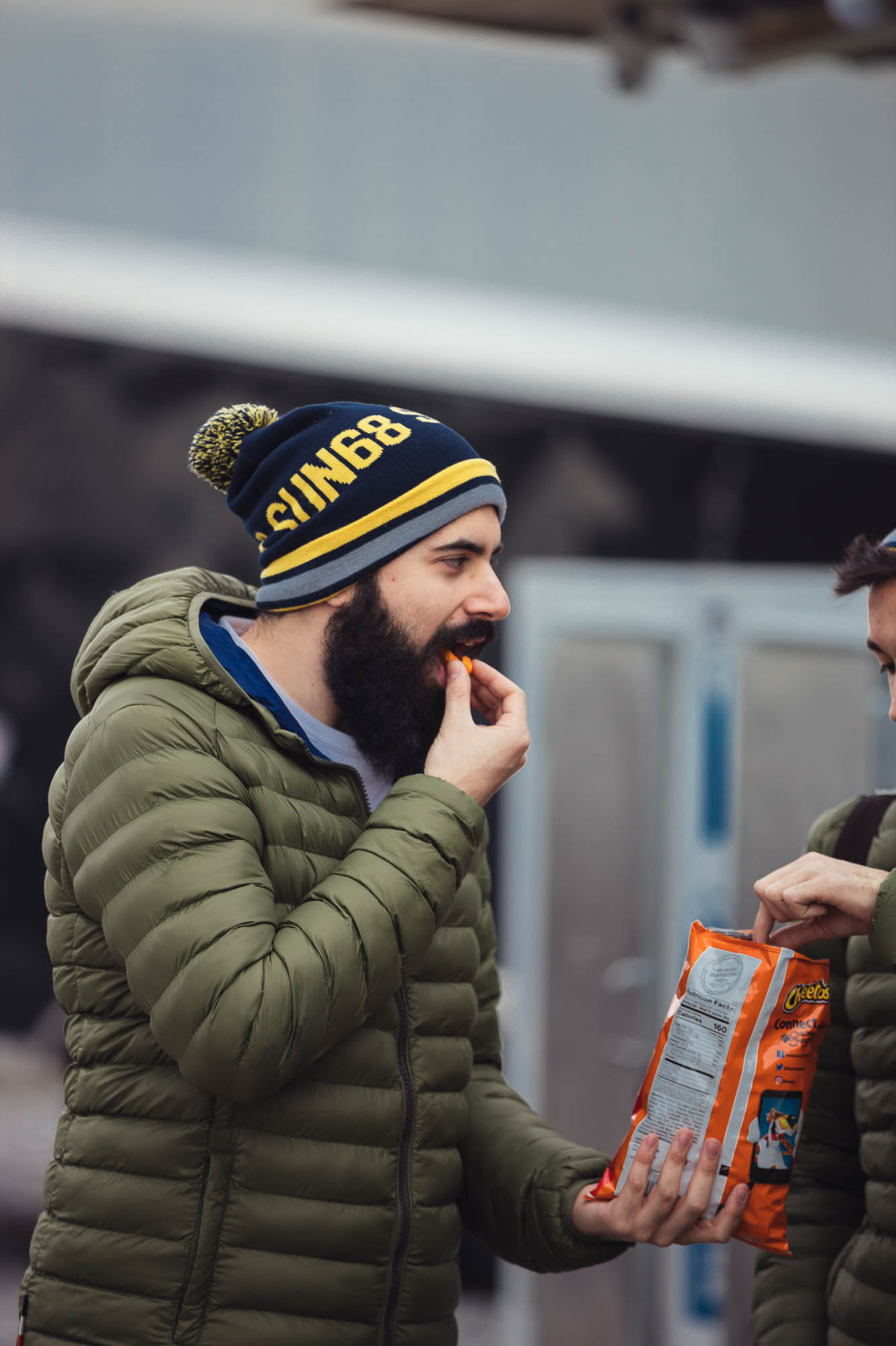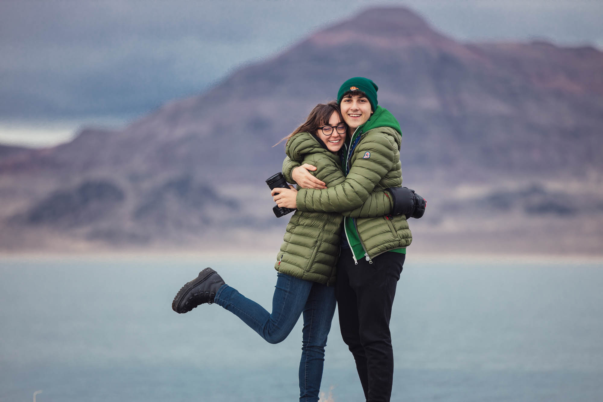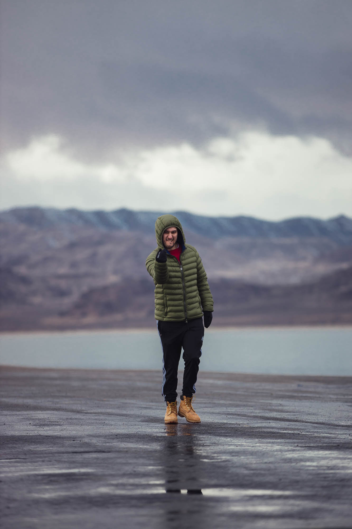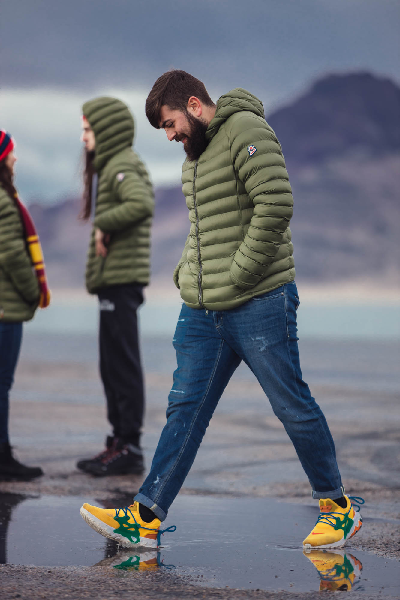 Ci abbracciamo, cerchiamo di scaldarci le mani uno con l’altro, ci facciamo gli scherzi, mentre gli altri prendono le auto e fanno gli idioti nell’acqua.