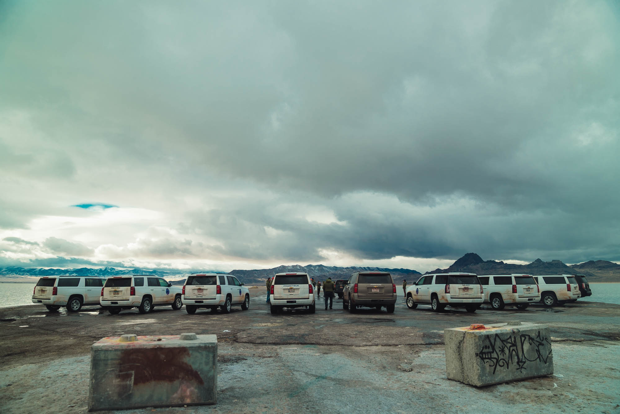 Arriviamo a Bonneville che è ormai mezzogiorno. Il freddo fuori si fa sentire. Percorriamo la speedway road fin dentro il lago salato e ci troviamo in mezzo ad uno spettacolo incredibile.
