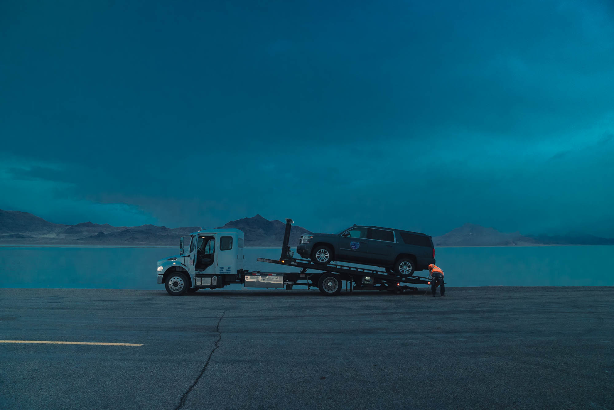 Ha qualcosa di romantico vedere il tramonto sul lago di Bonneville. L’acqua, in uno straordinario momento di poco vento, riflette precisamente il paesaggio creando un quadro meraviglioso di nuvole e colori nell’imbrunire. E vedere Akira, completamente inerme, venire trainata sopra il carro attrezzi, è estremamente drammatico.