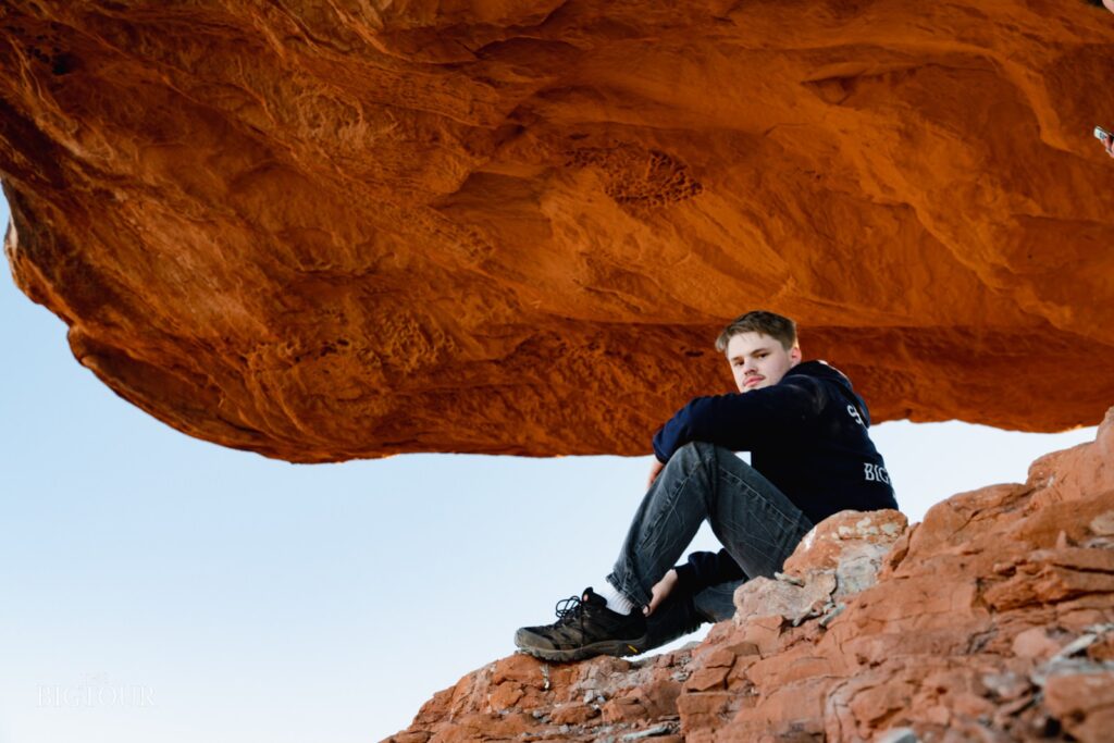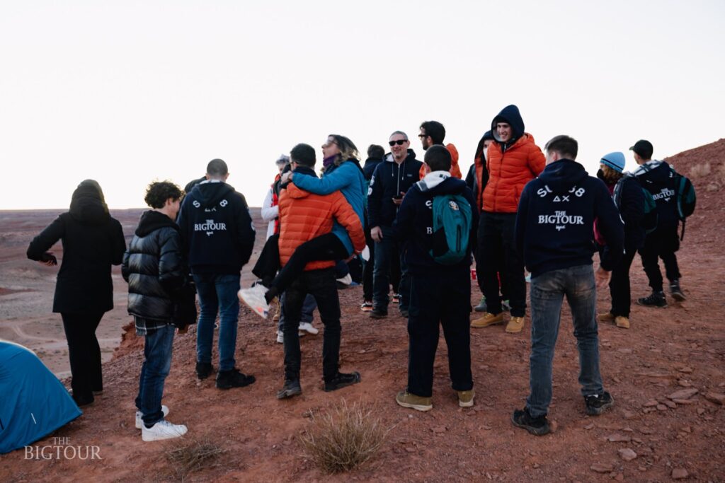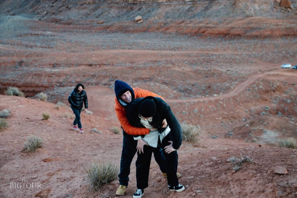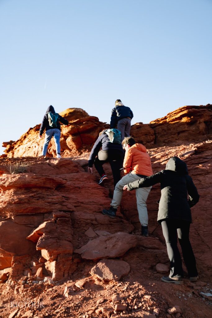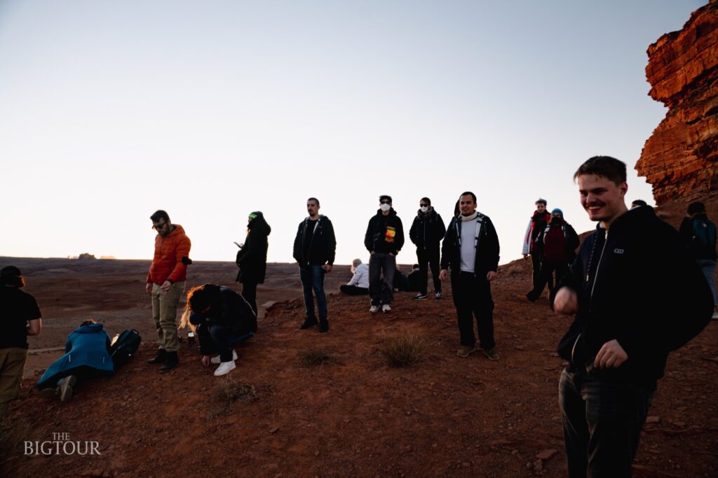 Arriviamo e scaliamo fino ad raggiungere la cima, da cui ci godiamo il paesaggio, che è così bello da sembrare surreale! Decidiamo dunque di guardare il tramonto lì, e perché no, di farci compagnia con una birreria. Il problema però è che mancano 15 minuti al tramonto, e le birre sono in macchina, all’inizio del percorso fatto a piedi per arrivare in cima.