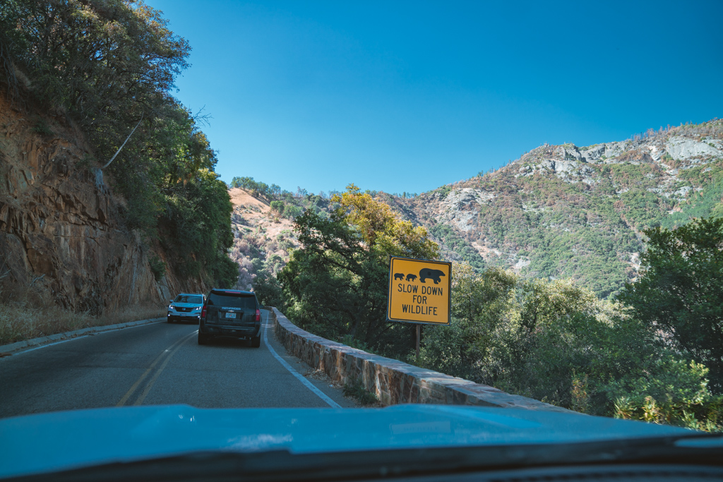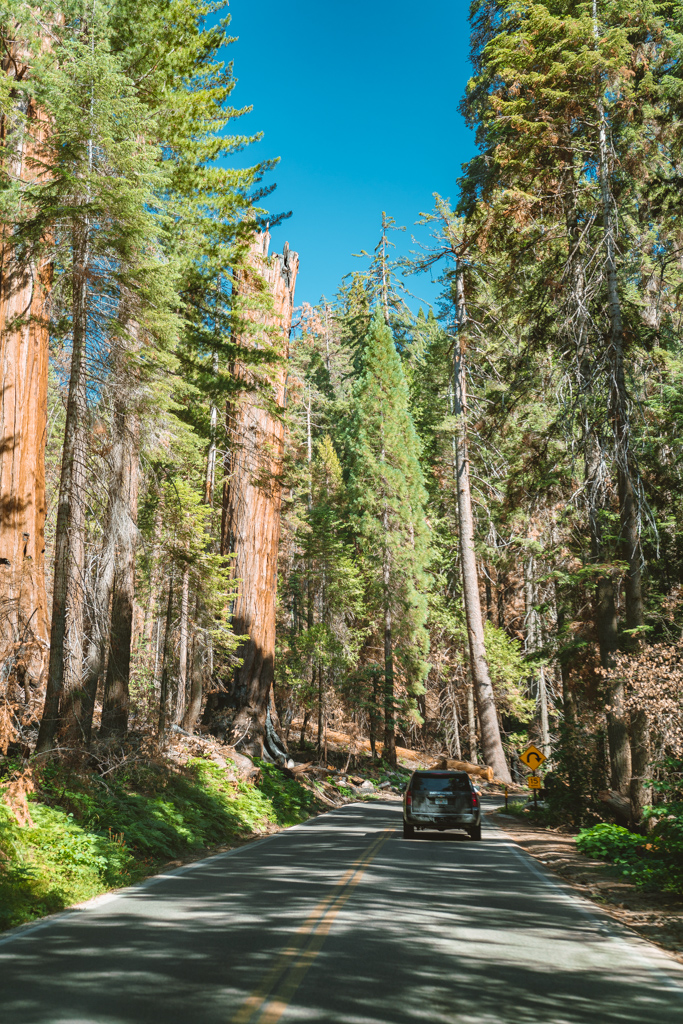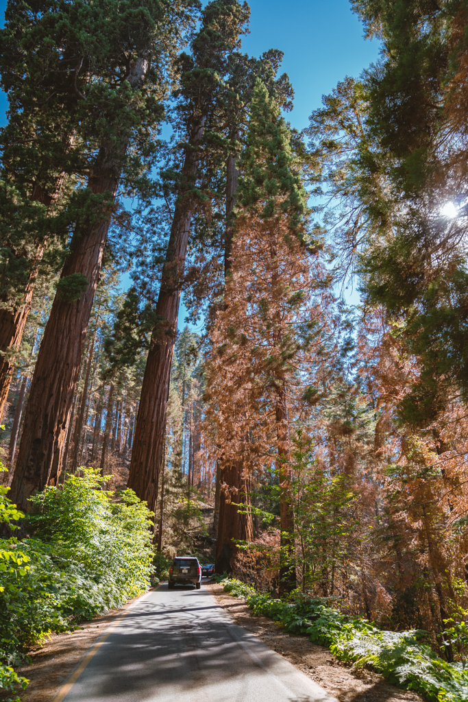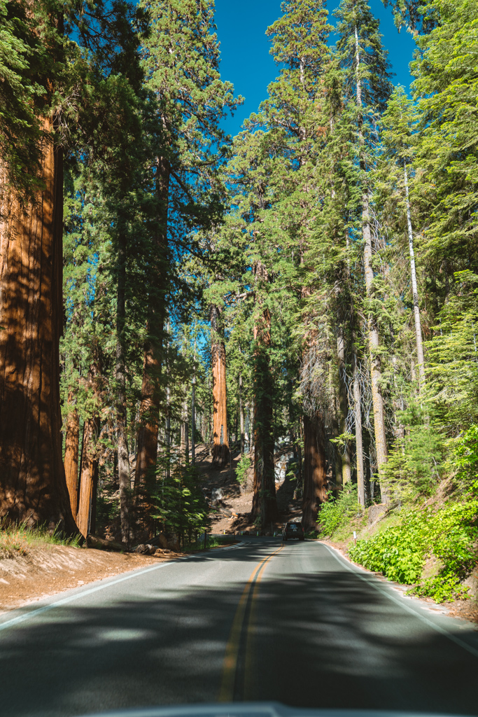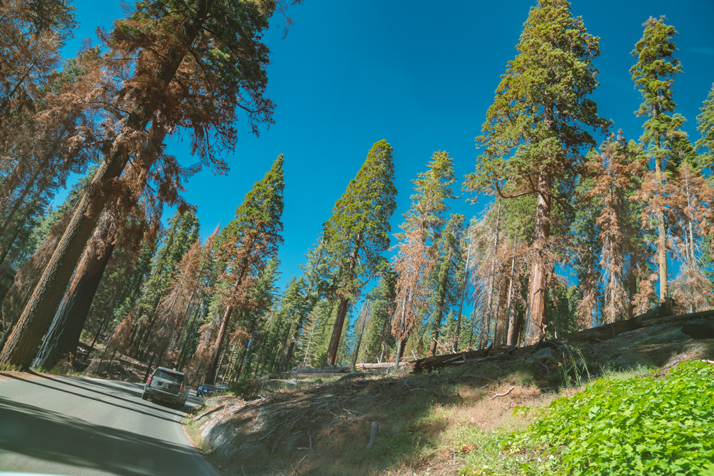 È il primo pomeriggio quando cominciamo a risalire le montagne del Sequoia National Park. La temperatura scende di curva in curva e, appena in cima, appaiono finalmente una, due, tre, dieci sequoie giganti dal tronco rosso, come le rocce che abbiamo lasciato nello Utah.