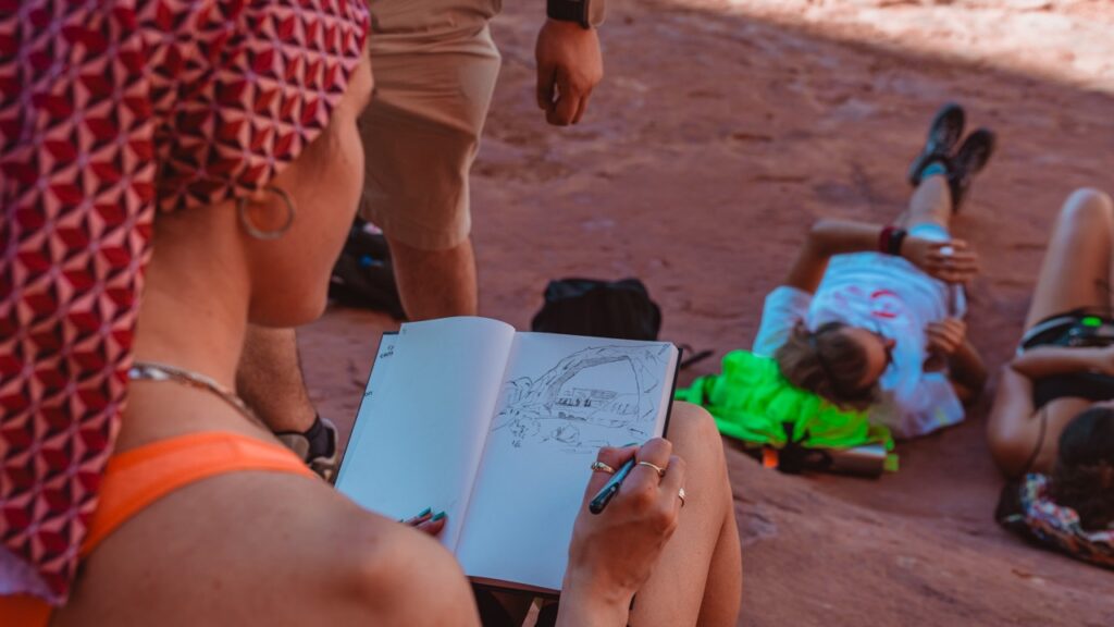 C’è chi si stende tra ritagli di sole, chi disegna il panorama, chi osserva dei binari inseguire l’orizzonte e chi rivive i ricordi della giornata di ieri impressi sulle polaroid.