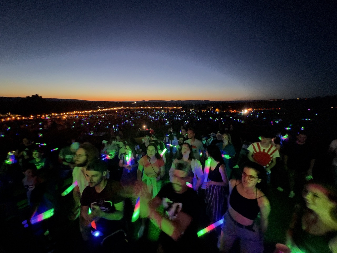 A quel punto il buio non è mai stato più luminoso. Gli sticks si accedono, così come le luci sul palco in mezzo al giardino: una band dà inizio a un concerto.