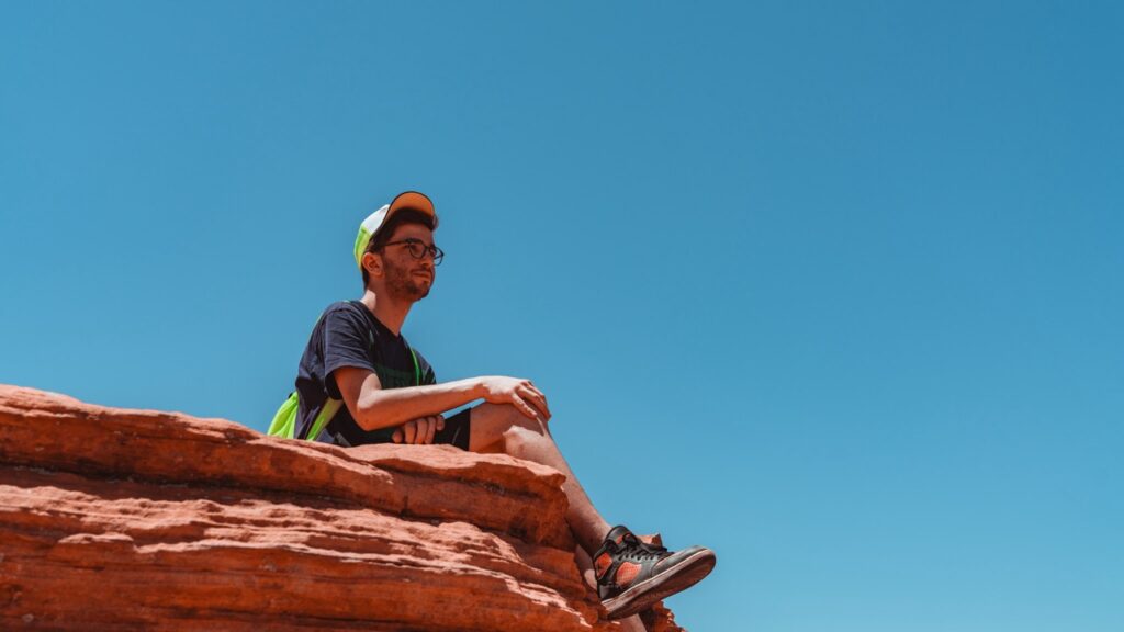 Guardandoci intorno non si può non pensare a quello che ha detto l’autista del pullman, ovvero che un pazzo non si può definire in altro modo, ha scalato quelle pareti in free solo.